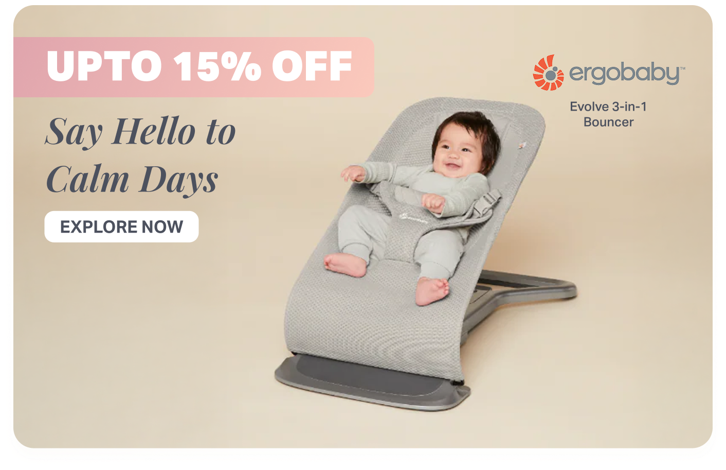 Ergobaby Evolve 3-in-1 Bouncer – Adjustable Multi-Position Baby Bouncer with Newborn Insert, Head to Hip Support, Ergonomic & Lightweight Rocking Chair, Folds Flat for Easy Storage, 2-13 Kgs, Birth - 2Years, Oxford Blue