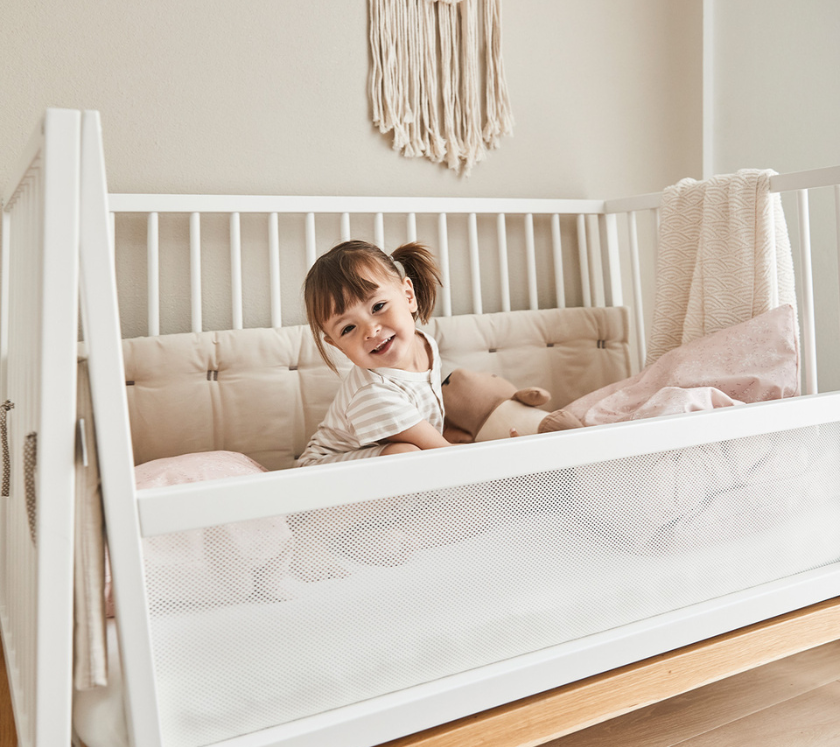 Designed to grow with your baby, the cot features a two-height adjustable base—keeping your comfort in mind during the early months, and safely adapting as your baby becomes more active. As your child grows, the cot can be transformed into a junior bed or sofa with the separately available conversion kit.