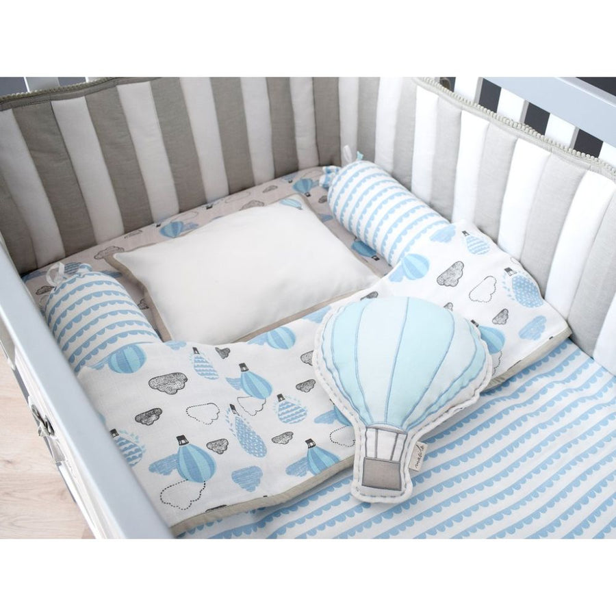 Masilo Organic Muslin Cot Bedding Set – Up, Up & Away (Blue)