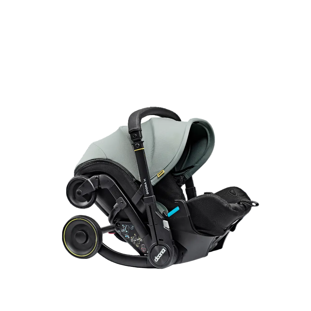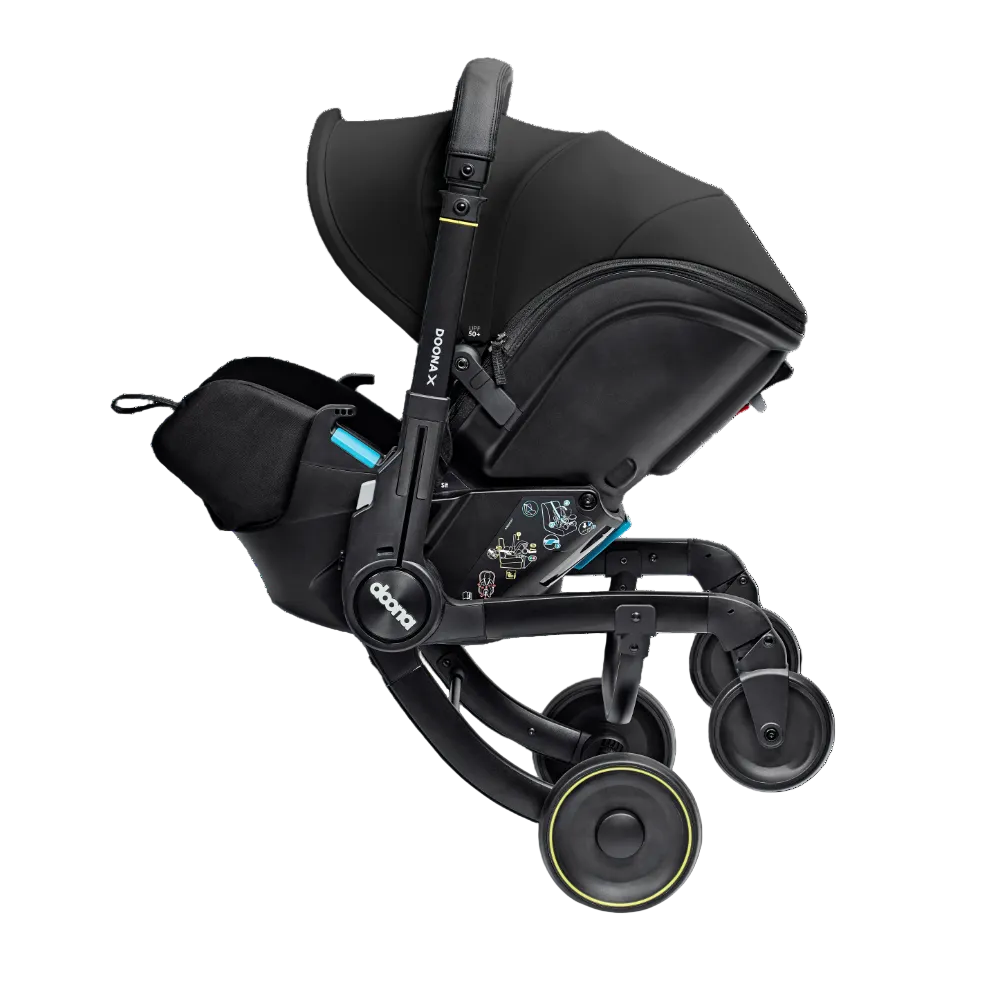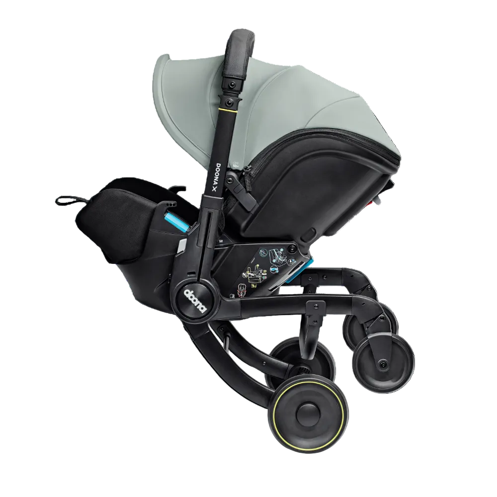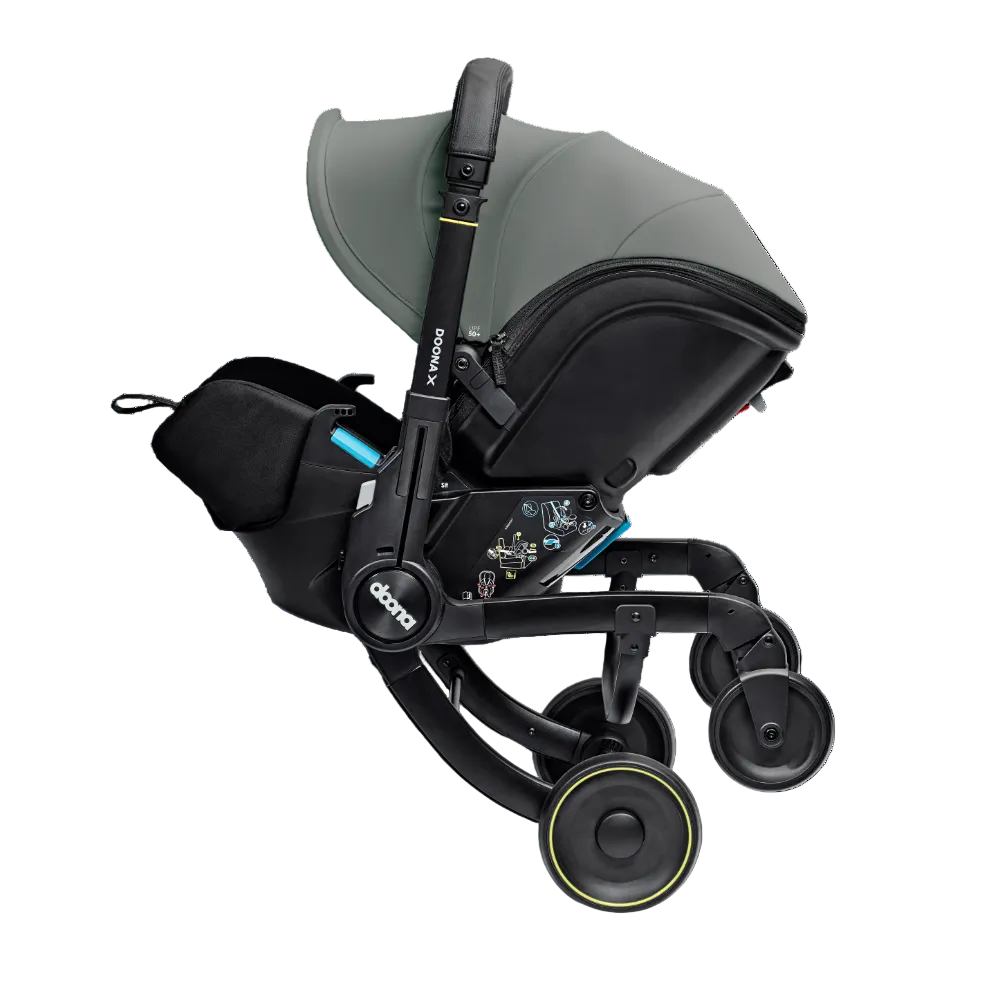 Doona X is the new generation of the Doona Car Seat & Stroller. Now with 3 recline positions - Sit, Relax and Lean Back, Doona X allows your child to lie down and relax. With its integrated, adjustable harness and headrest, the Doona X meets the European i-Size safety regulation (R-129). It folds and unfolds effortlessly, providing ultimate convenience for parents on the go. The pull-along mode makes it even easier to maneuverer in crowded or compact spaces. The smooth wheel release system and patented shock absorbers provide a smoother, safer ride. The Doona X comes with the Doona SIP add-on, providing enhanced side-impact protection. Doona X cannot be reclined when in car seat mode.