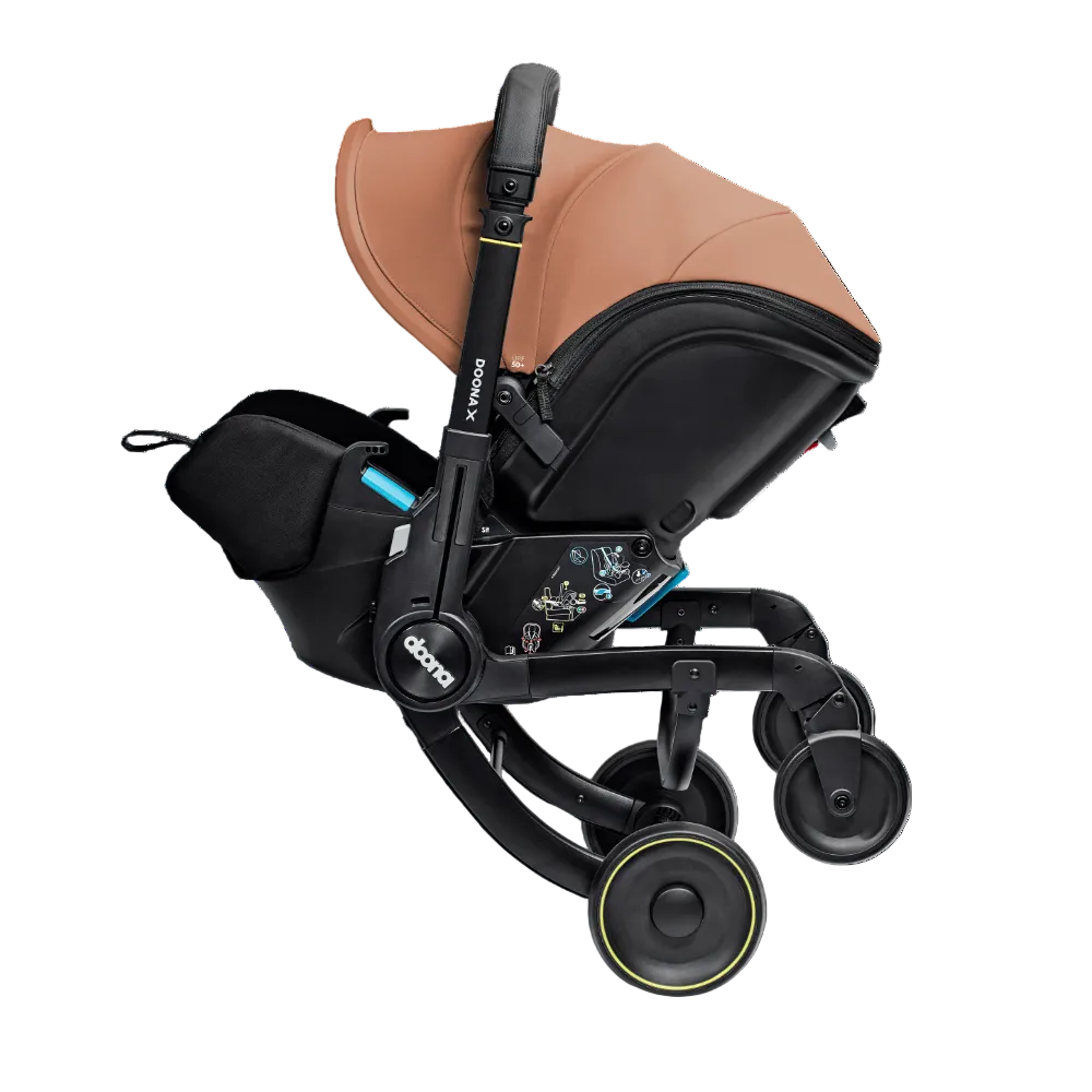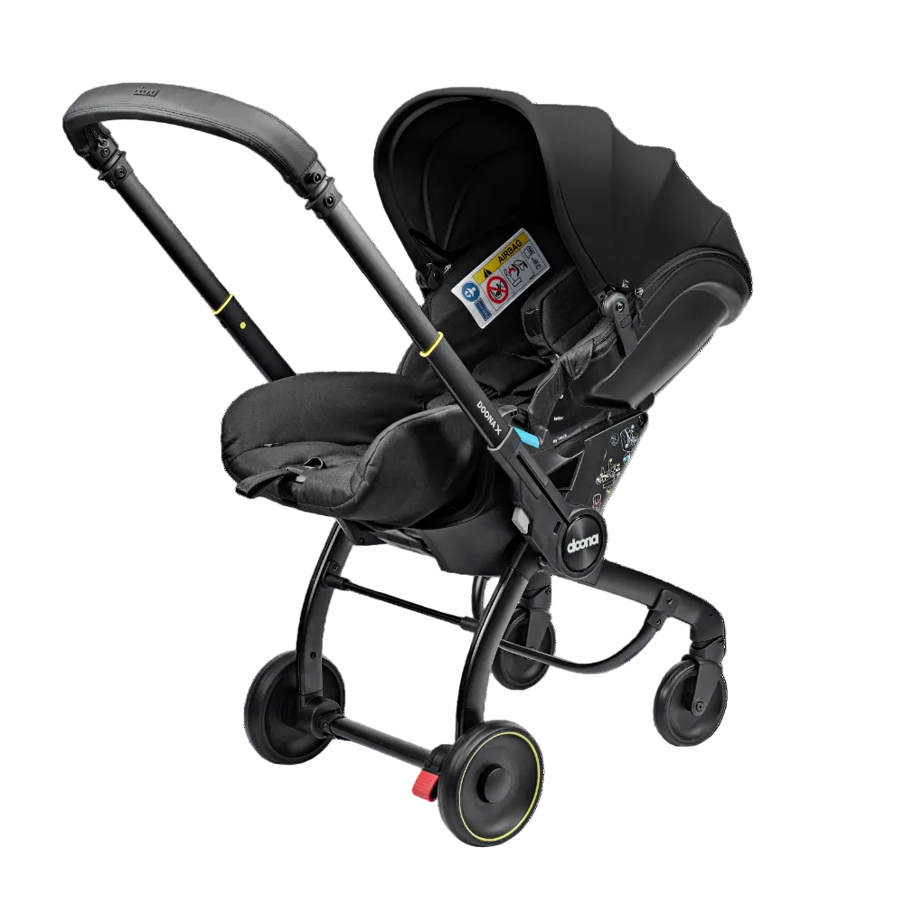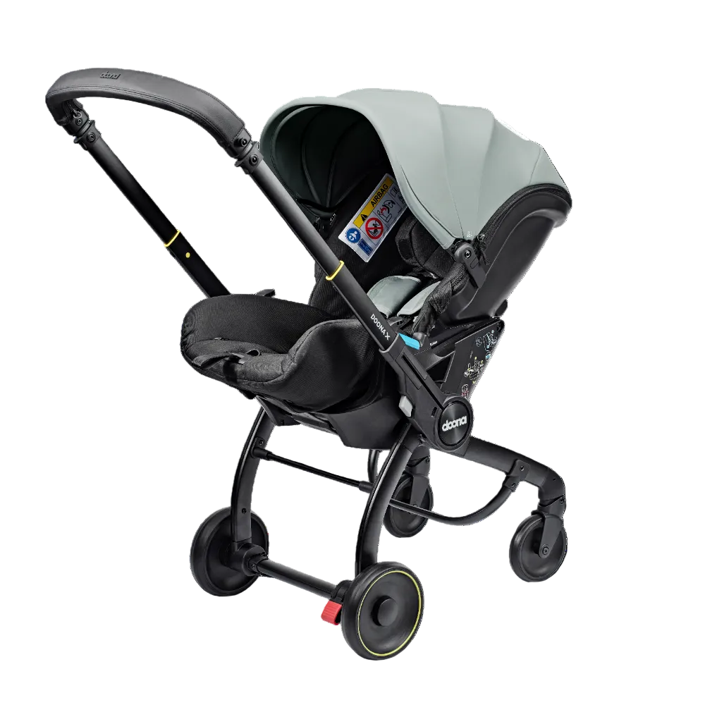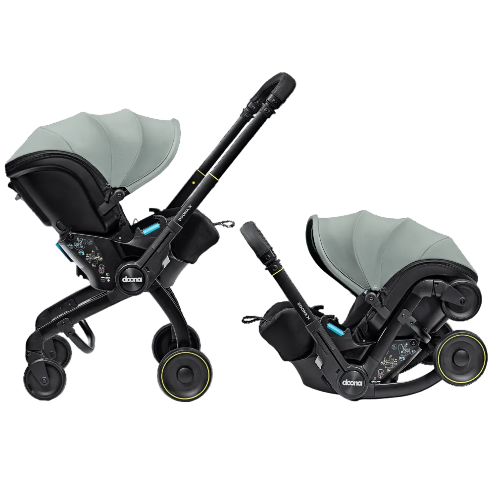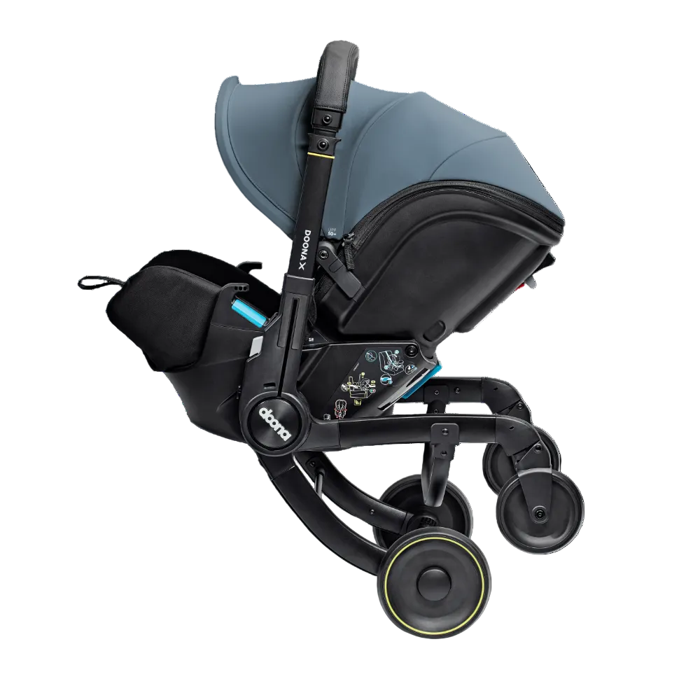 Doona X is the new generation of the Doona Car Seat & Stroller. Now with 3 recline positions - Sit, Relax and Lean Back, Doona X allows your child to lie down and relax. With its integrated, adjustable harness and headrest, the Doona X meets the European i-Size safety regulation (R-129). It folds and unfolds effortlessly, providing ultimate convenience for parents on the go. The pull-along mode makes it even easier to maneuverer in crowded or compact spaces. The smooth wheel release system and patented shock absorbers provide a smoother, safer ride. The Doona X comes with the Doona SIP add-on, providing enhanced side-impact protection. Doona X cannot be reclined when in car seat mode.