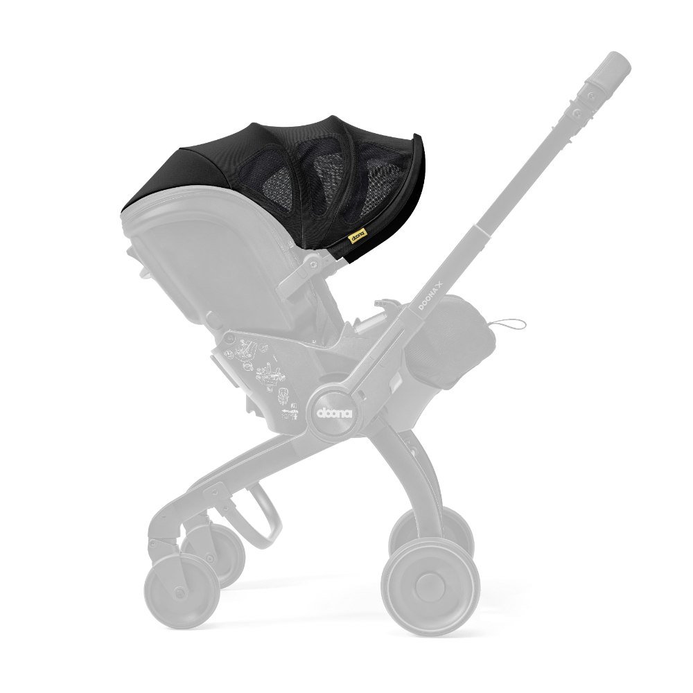Our Summer Canopy, crafted with breezy mesh windows, ensures optimal ventilation, keeping your little one cool in warm weather. This water repellent canopy, with a UPF of 50+, easily installs and removes via a zipper connection, designed for seamless compatibility with the Doona X. Enjoy comfort, protection and convenience on your strolls.