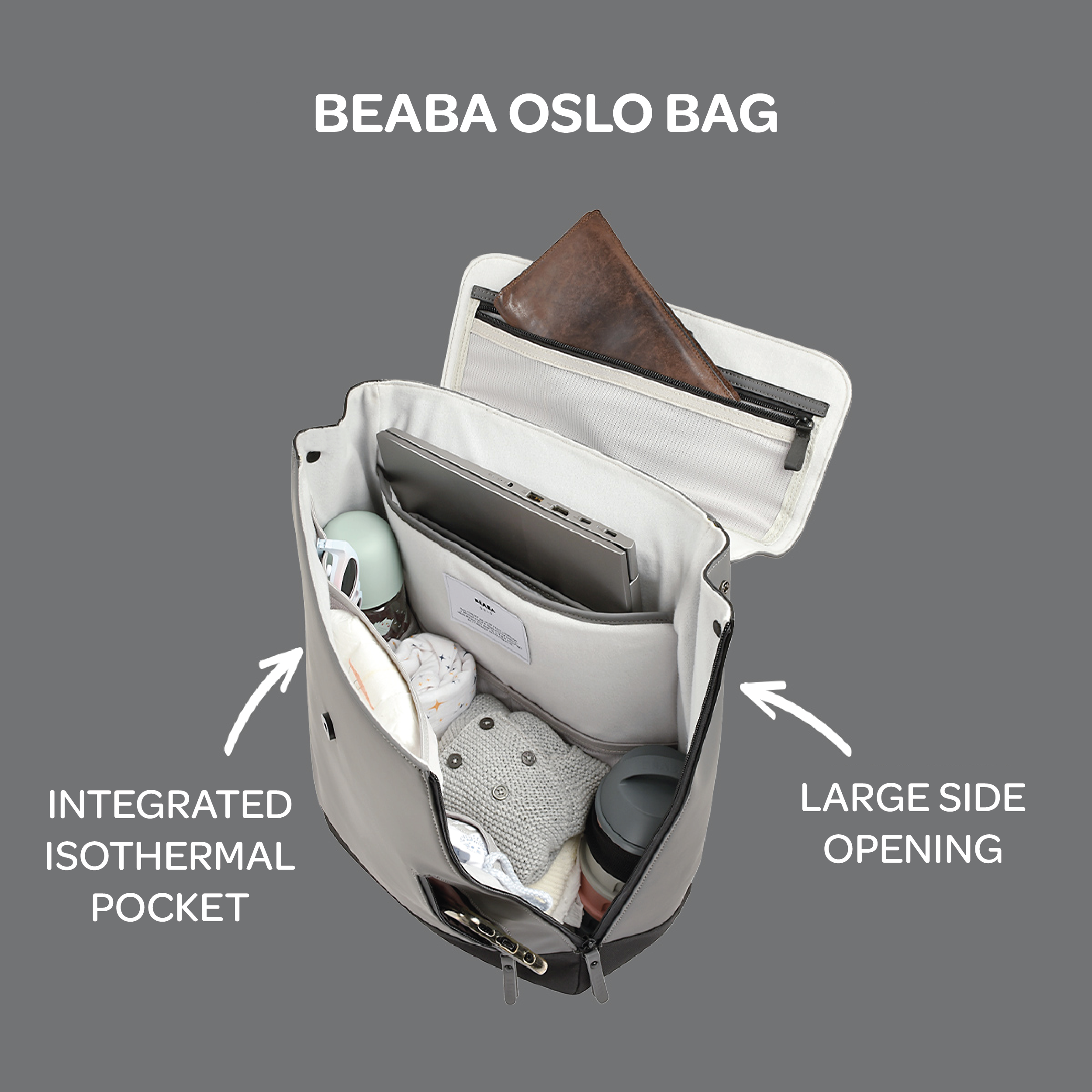 - Large Capacity and Organized Interior : Featuring a large 19L capacity, the Beaba Oslo backpack offers 11 dedicated compartments, including zippered and mesh pockets, to keep diapers, wipes, bottles, pacifiers, snacks, and personal items neatly organized. This thoughtful design ensures everything has its place, so you can find what you need quickly without unpacking the entire bag.