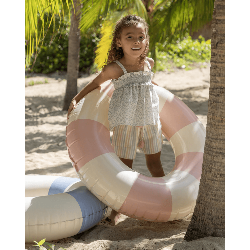 The Olivia Blouse is a charming and timeless piece, crafted from a soft cotton-linen blend in a delicate mini flower prints. Featuring a smocked bodice, cross-back straps, and a beautifully embroidered scalloped hem, this blouse blends comfort with elegance, making it perfect for both casual and special occasions. This product only includes the blouse, not the shorts.