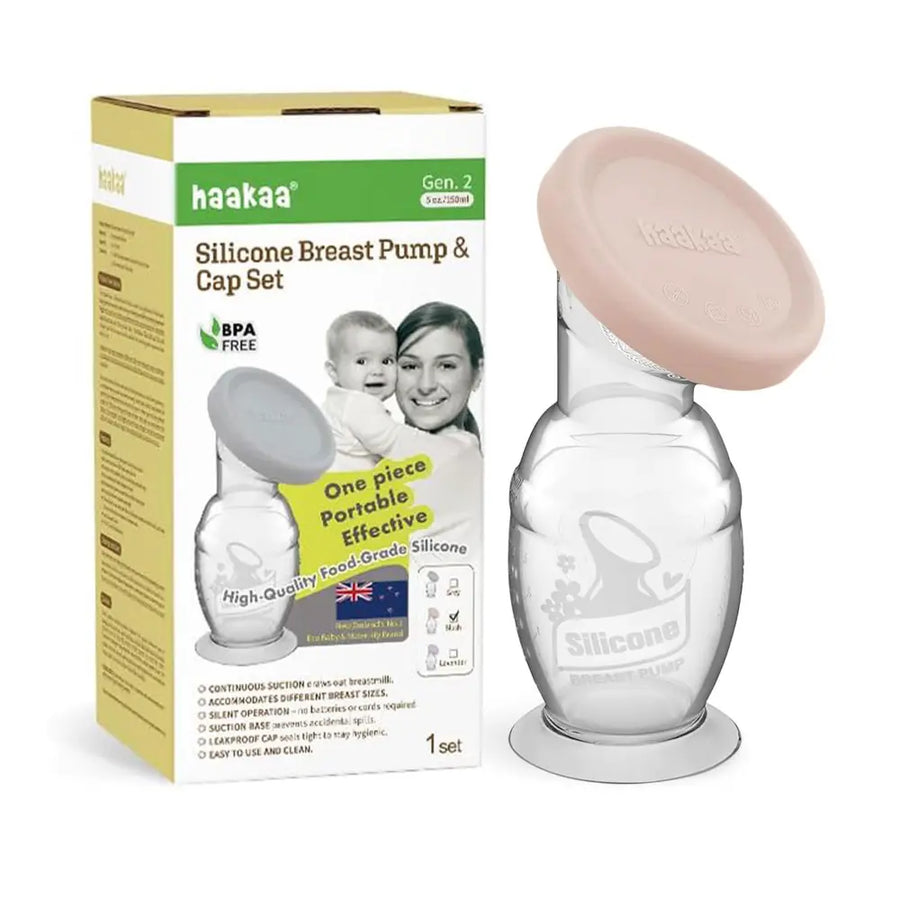 Haakaa Gen. 2 Silicone Breast Pump & Cap Set – Improved Suction & Comfort – 150ml – Blush