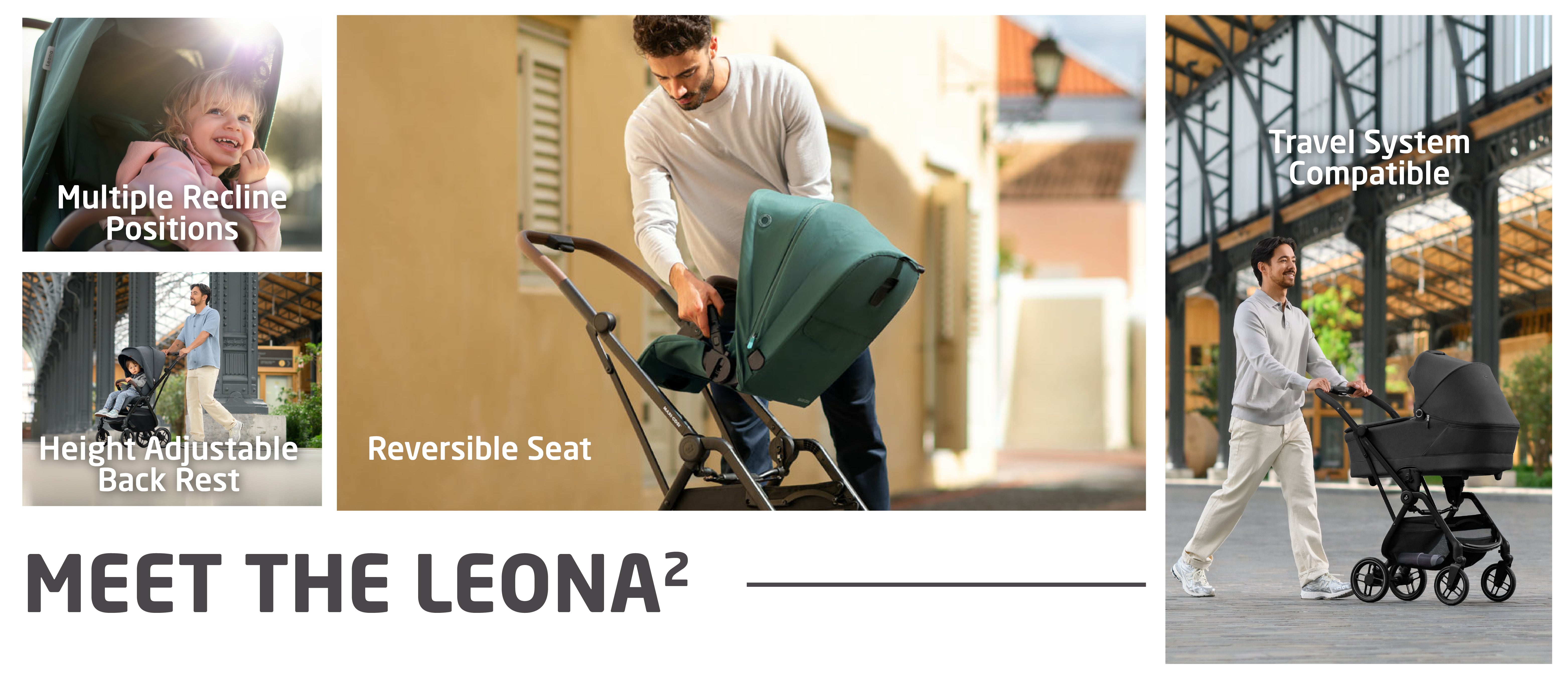 The Maxi-Cosi Leona² stroller is sturdy, lightweight, and an easy to fold city stroller that is suitable from birth and up to 4 years. Designed with a reversible seat unit and height-adjustable backrest and leg rest, it grows with your child’s needs. Comfort is ensured with a soft double padded seat, shock-absorbing all wheel suspension, puncture-proof wheels that is suitable for all roads, and an extendable sun canopy for added protection. Weighing just 8.6 kg, the Leona² stroller offers a see-through window, a near-flat recline, and a compact one-hand easy self-standing fold. The award-winning stroller is built for both comfort and durability.