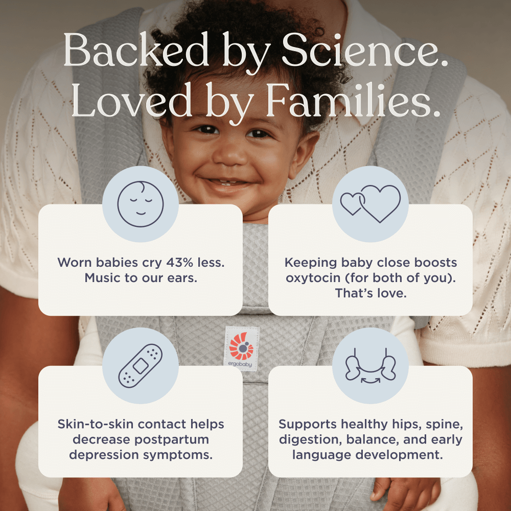 The Ergobaby Omni Deluxe carrier has incredible comfort and maximum storage to keep you supported and your baby cozy anytime, anywhere with it's breathable mesh fabric. It provides 4 carrying positions from inward, facing out, hip, and back carry and grows with your baby from newborn to 4 years, making it the only carrier you need. Omni Deluxe includes 6 storage pockets to fit your essentials, adjustment strap indicators, lumbar support, and cushionable straps, UPF baby hood for privacy and sun protection for easy adjustments and added comfort.