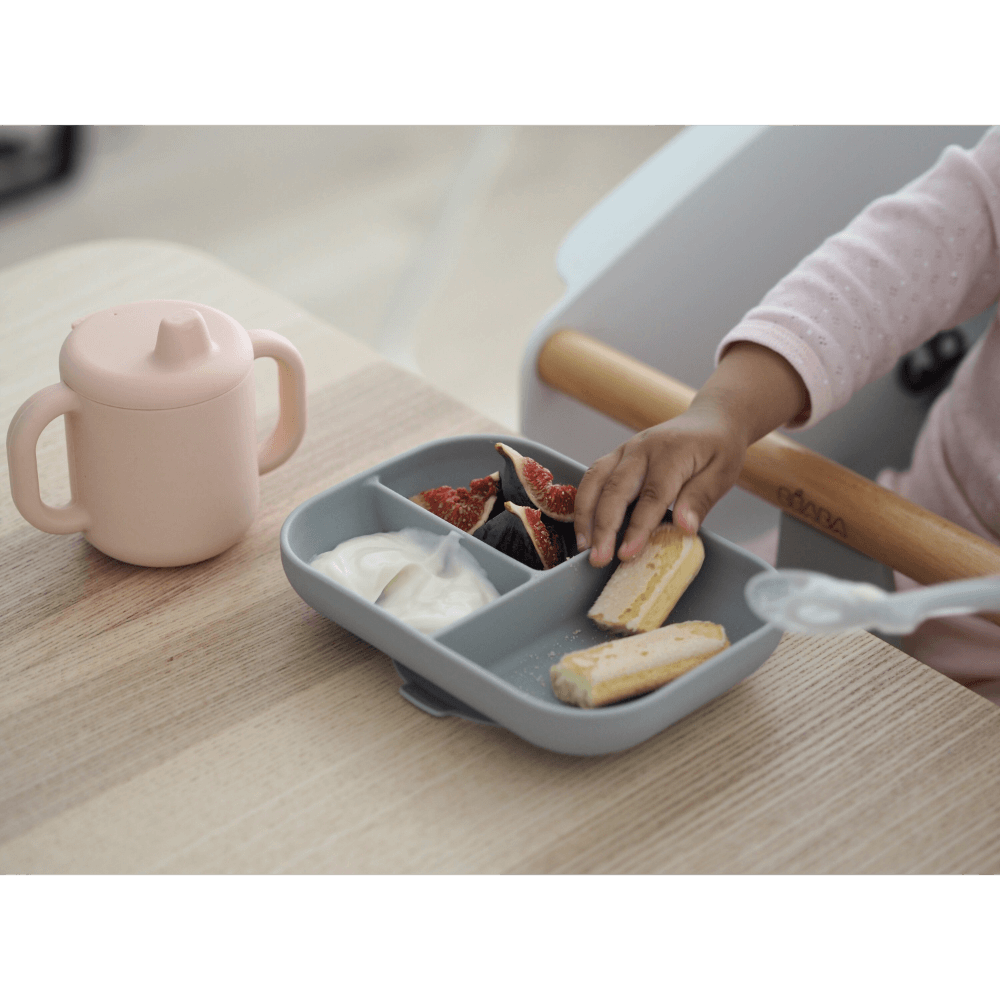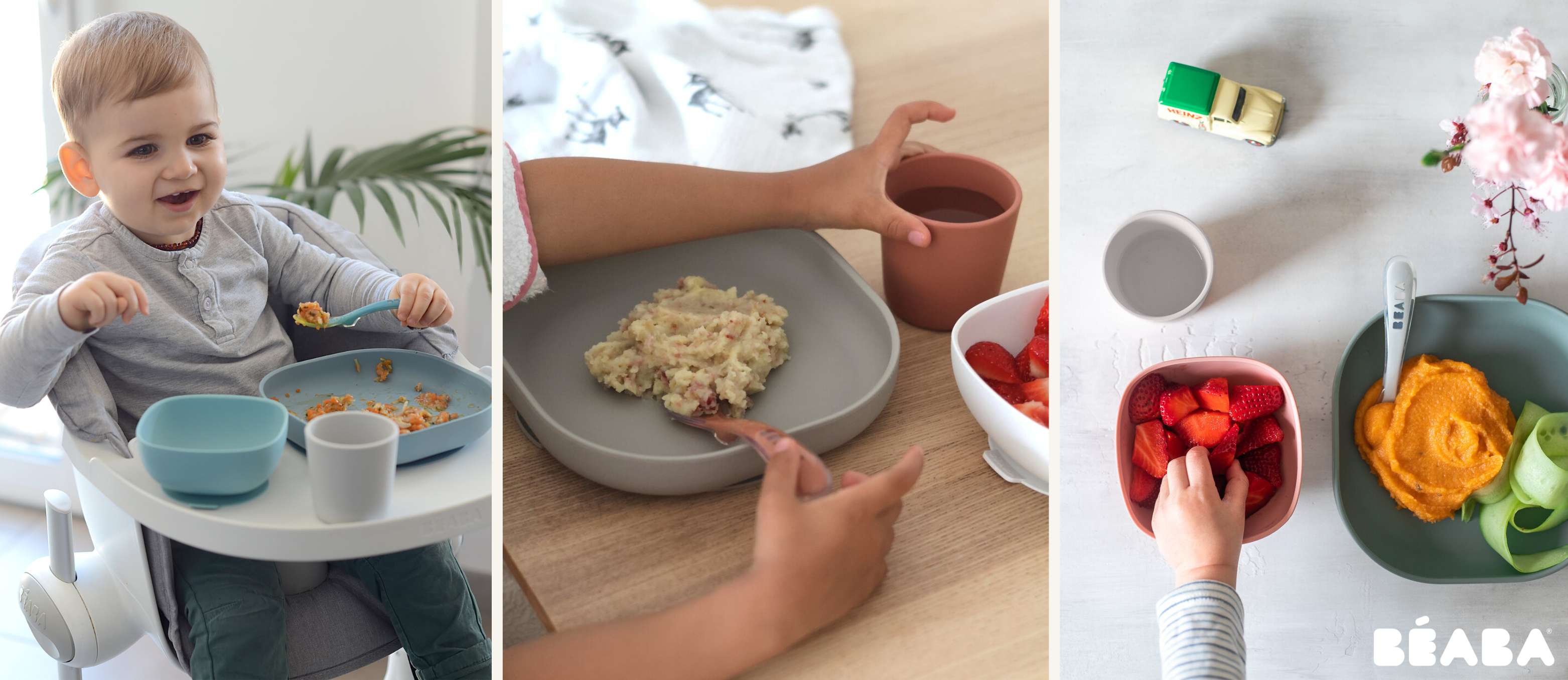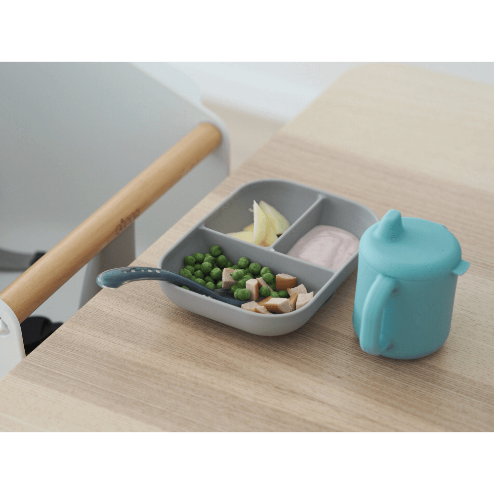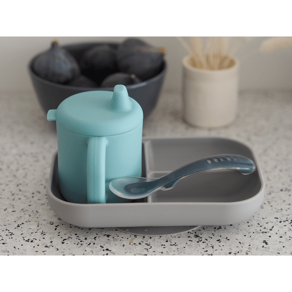 - Complete First Meals Set: The Beaba Silicone Learning Set includes a divided suction plate, a 2nd stage silicone spoon, and a silicone learning cup with a spout lid. Designed to help babies and toddlers transition easily to self-feeding