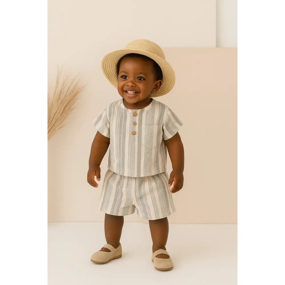 Introducing our Baby Shirt and Shorts Set - a charming, eco-conscious ensemble crafted from organic cotton. The shirt features delightful detailing, and the shorts prioritize comfort, making it the perfect choice for stylish and sustainable occasion wear for your baby. Choose this set for your little one's ethical fashion statement.