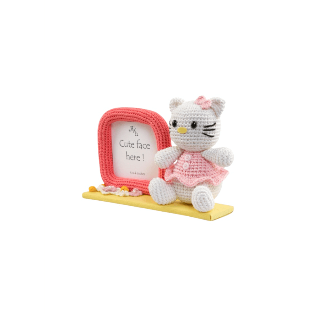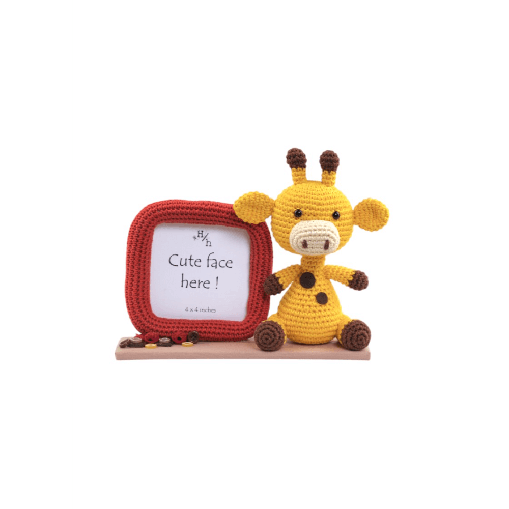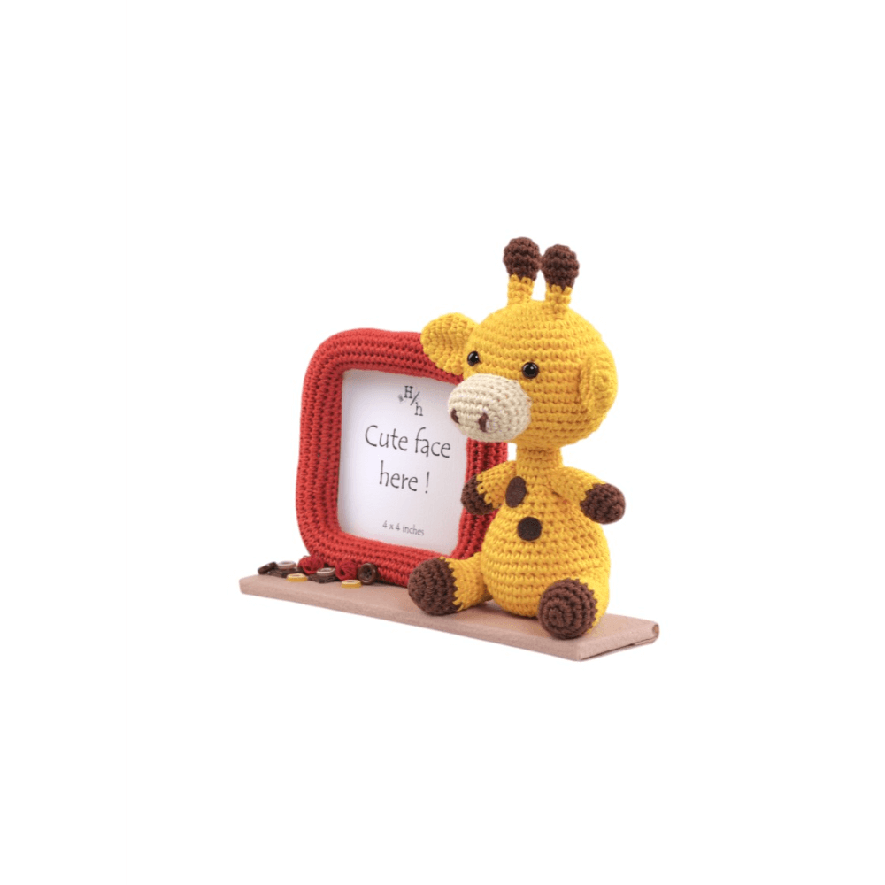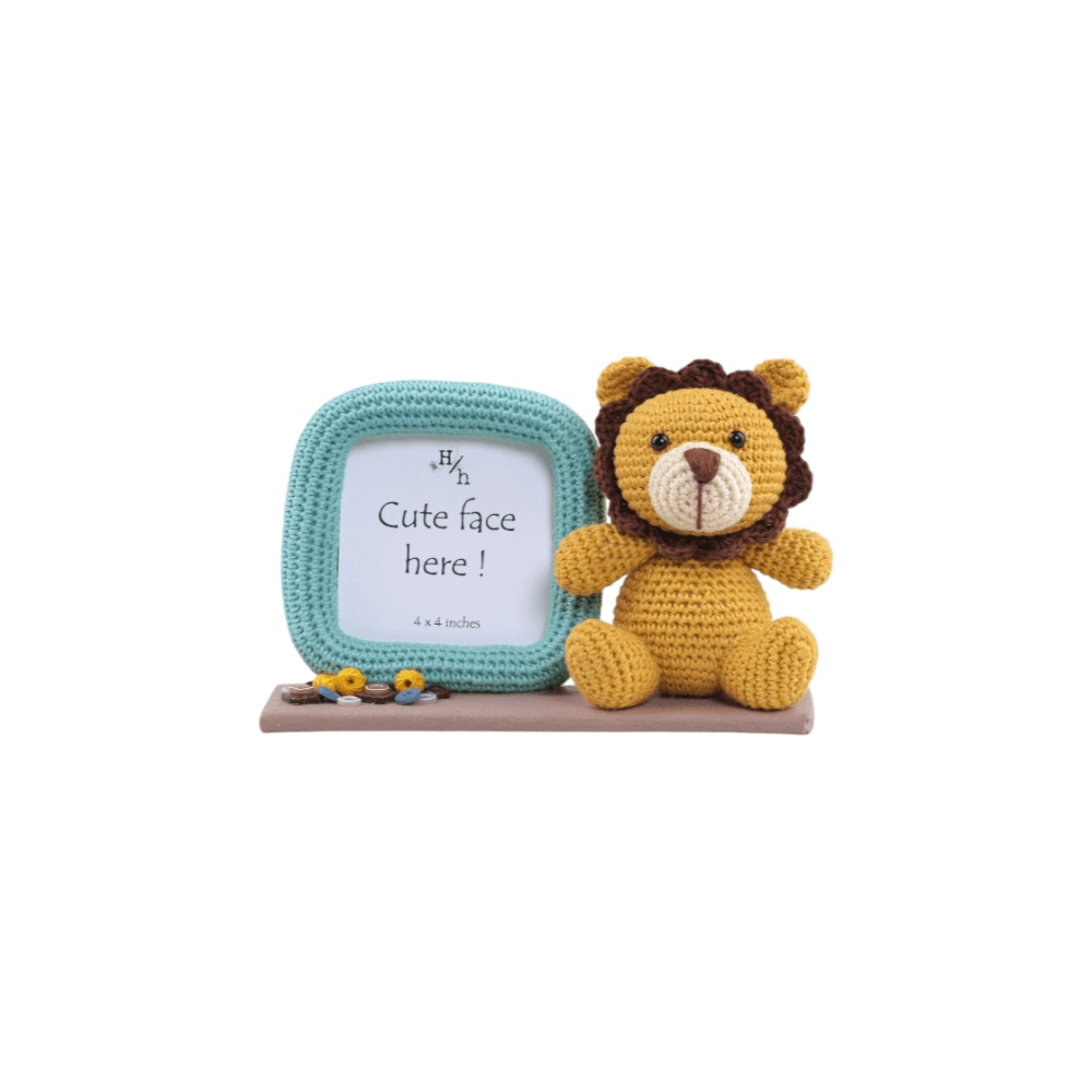 Each frame is lovingly handmade with premium crochet craftsmanship, featuring charming animal characters — from the sweet Hello Kitty in her pastel pink dress and bow, the cuddly Lion Cub beside a calming aqua border, the cheerful Baby Giraffe with its tiny horns and bright spots, to the playful Monkey hugging a sunny yellow frame. Designed with heart-warming details, cosy textures, and vibrant colours, every frame beautifully showcases a 4x4 inch photo, adding a playful and affectionate touch to nurseries, kids’ rooms, or any cozy corner. These crochet keepsakes are perfect for baby showers, birthdays, and thoughtful gifting, bringing joy and personality to every space. Each piece is a unique handmade treasure, blending artistry, color, and charm to turn your favourite moments into lasting memories.