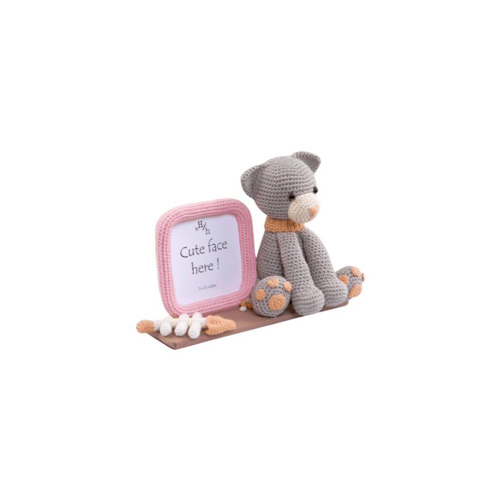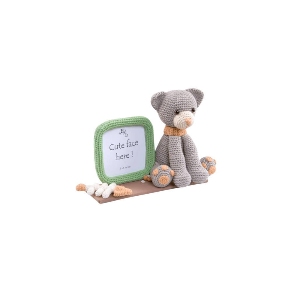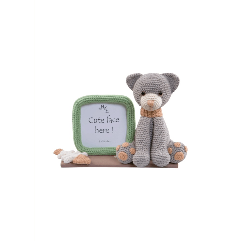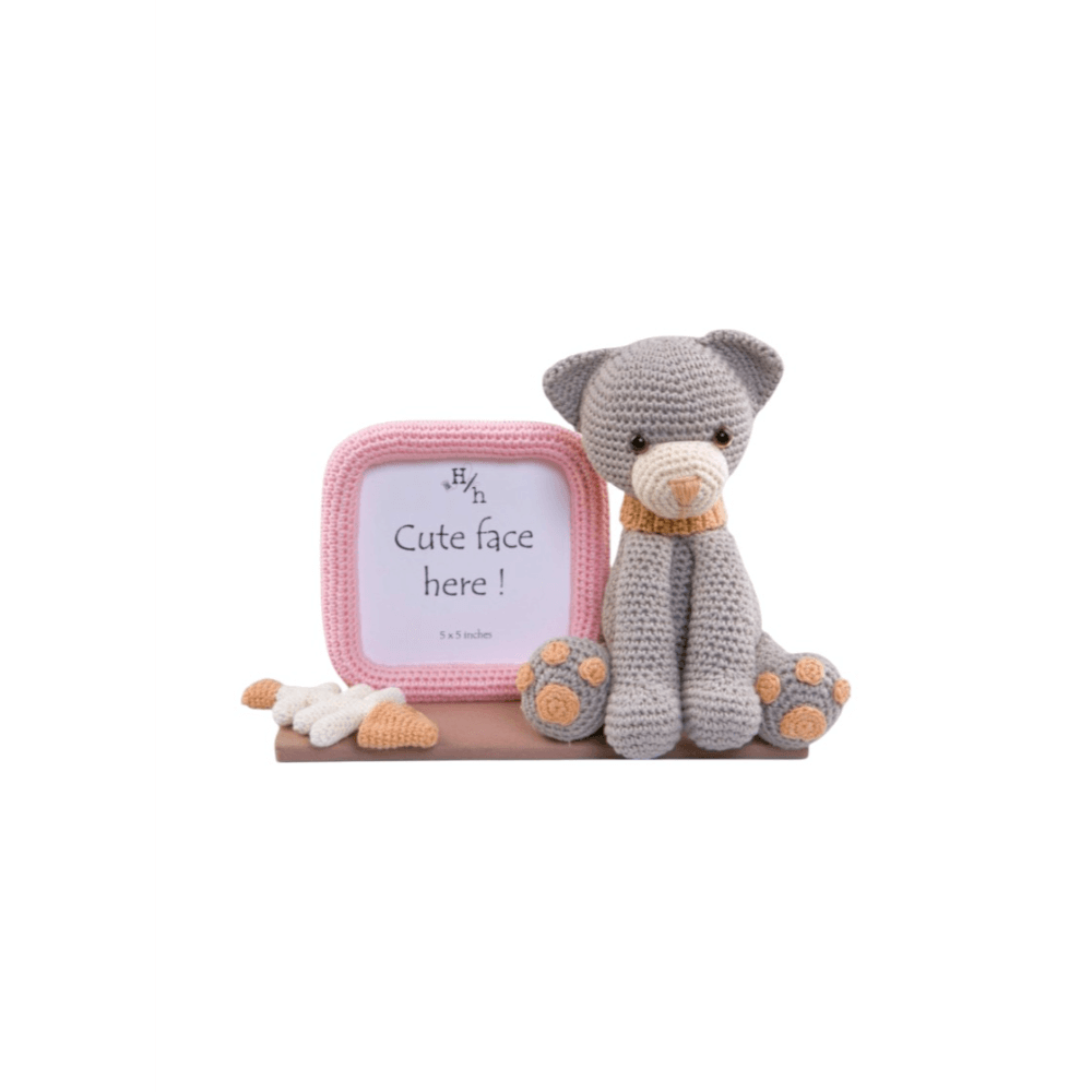 Add a touch of handmade charm to your home with this adorable crochet photo frame featuring a Kitty! Crafted with love and care, this one-of-a-kind piece combines a 5x5 inch photo holder with a sweet crocheted cat and playful details like a fish bone accent and paw print feet. Perfect for a nursery, kids’ room, or as a thoughtful baby shower gift, this frame is ideal for showcasing your favourite little face. Made from high-quality yarn and securely attached to a sturdy base, it’s both decorative and durable. Bring a cosy, whimsical touch to any space with this charming crochet kitty frame – because every cute face deserves a cute frame!