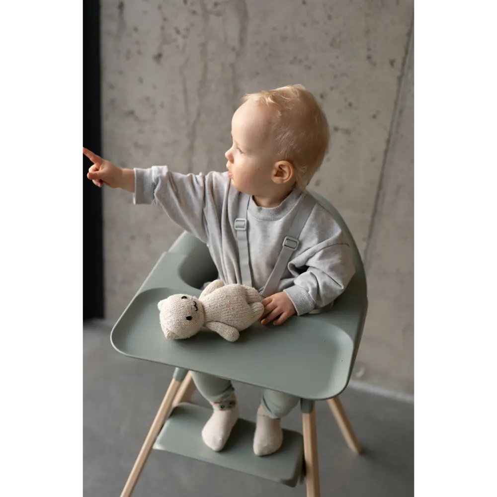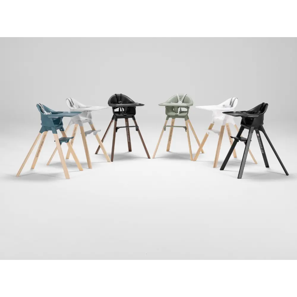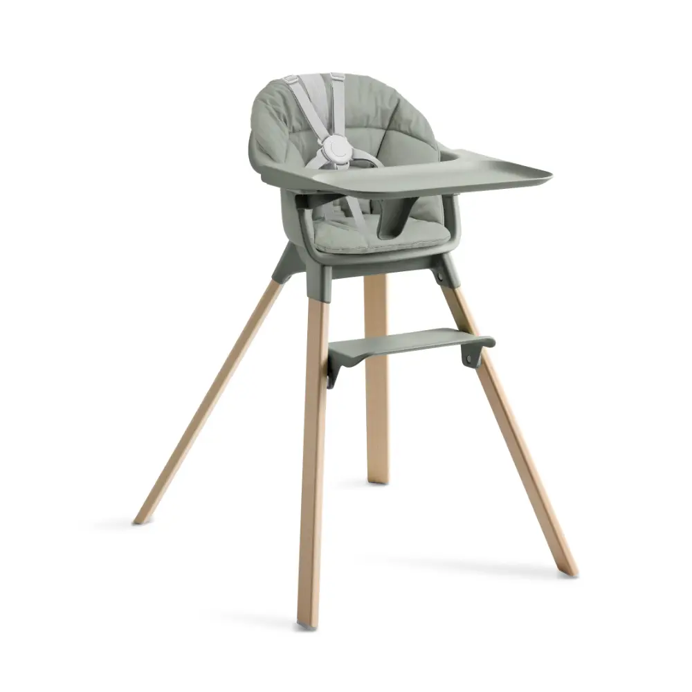 The Stokke® Clikk™ Highchair was developed to address all that a parent needs in a mealtime chair. It includes a tray, a chair, and a harness. This highchair can be used from 6 months up to 3 years. It is lightweight (3.63 kg) and easy to assemble (no tools required), making it convenient to travel with. It comes with three configurations for optimal seating at each age and the adjustable foot plate offers two positions.