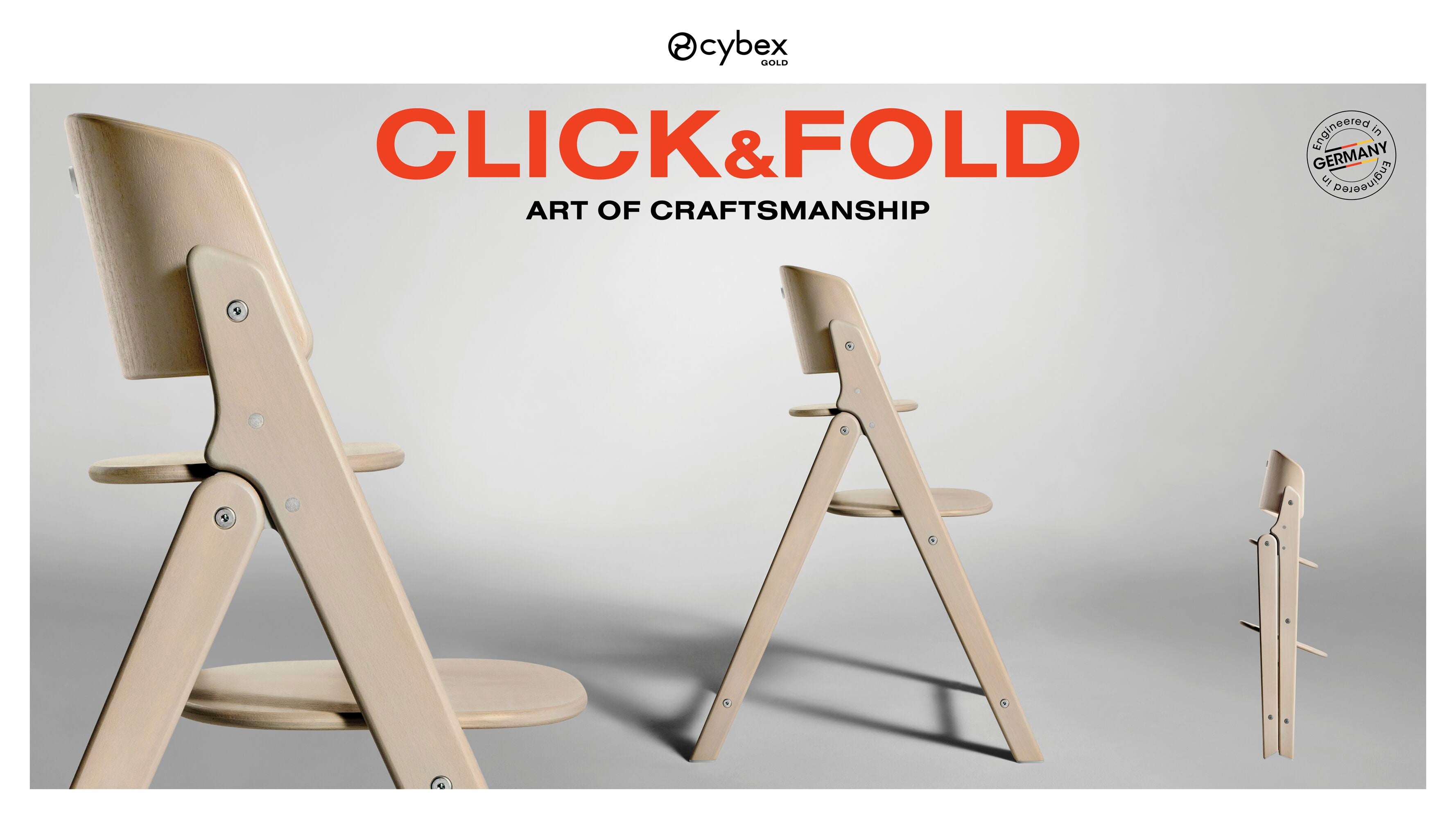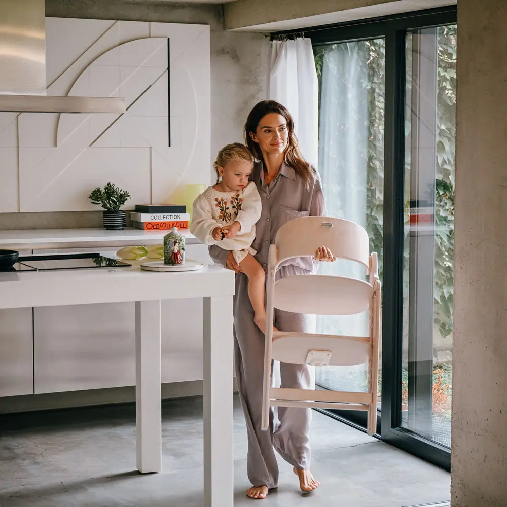 The Cybex CLICK & FOLD beechwood highchair is thoughtfully designed with a focus on quality, safety, and everyday ease. A reassuring click when unfolding lets you know the chair is securely in place, giving parents added confidence during daily use. It includes everything you need to comfortably seat your little one from 6 months onwards. Designed to grow with your child, the Click & Fold offers a practical seating solution from baby’s first meals all the way to adulthood. Its clean, modern design—with straight edges and a gently curved backrest—fits beautifully into any home. Cleverly engineered, the highchair is made to support your back with adjustable seat height and folds smoothly in one easy motion into a compact size, making it simple to store or carry when not in use. The CLICK & FOLD highchair comes with a Babyset and feeding tray and is made to transition from a classic highchair to a toddler chair.