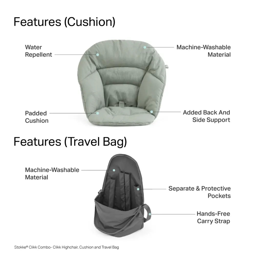 The Stokke® Clikk™ High Chair Bamboo with Cushion and Travel Bag is designed for easy, stress-free mealtimes at home or on the go. Lightweight and quick to assemble without tools, it includes everything you need in one box.