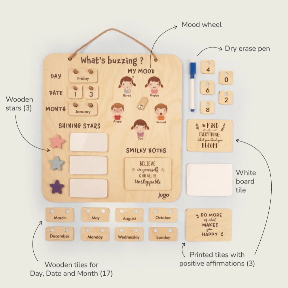 - Mood Wheel: Kids can track their emotions with the mood wheel, helping them express and embrace their emotions in a playful way