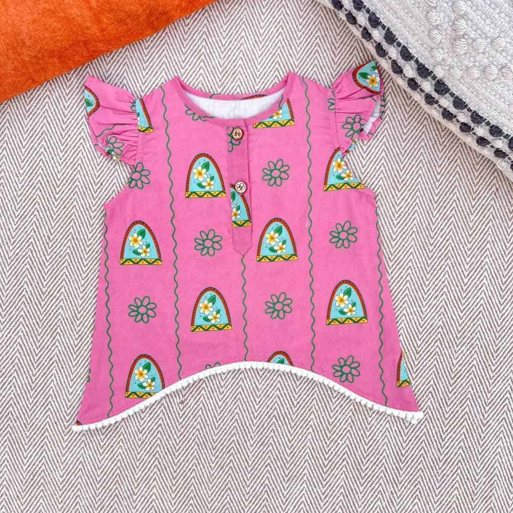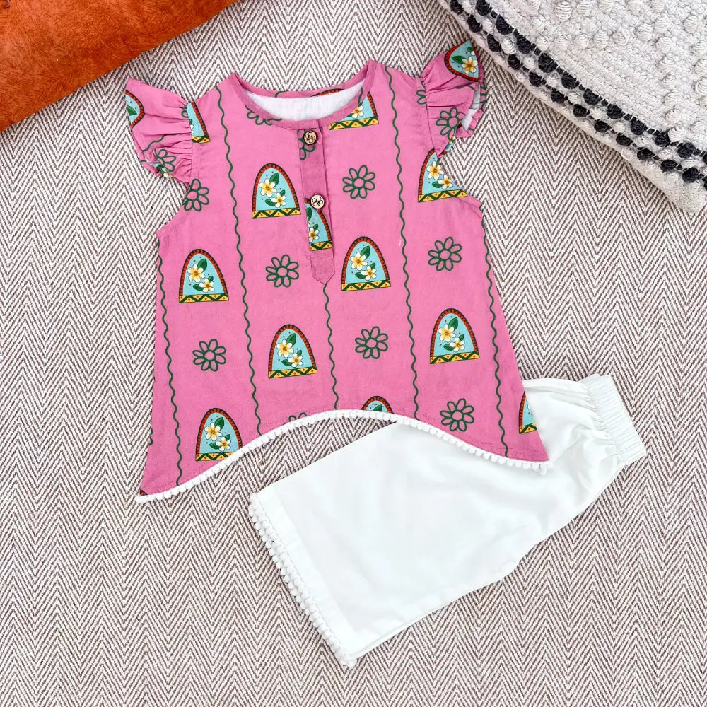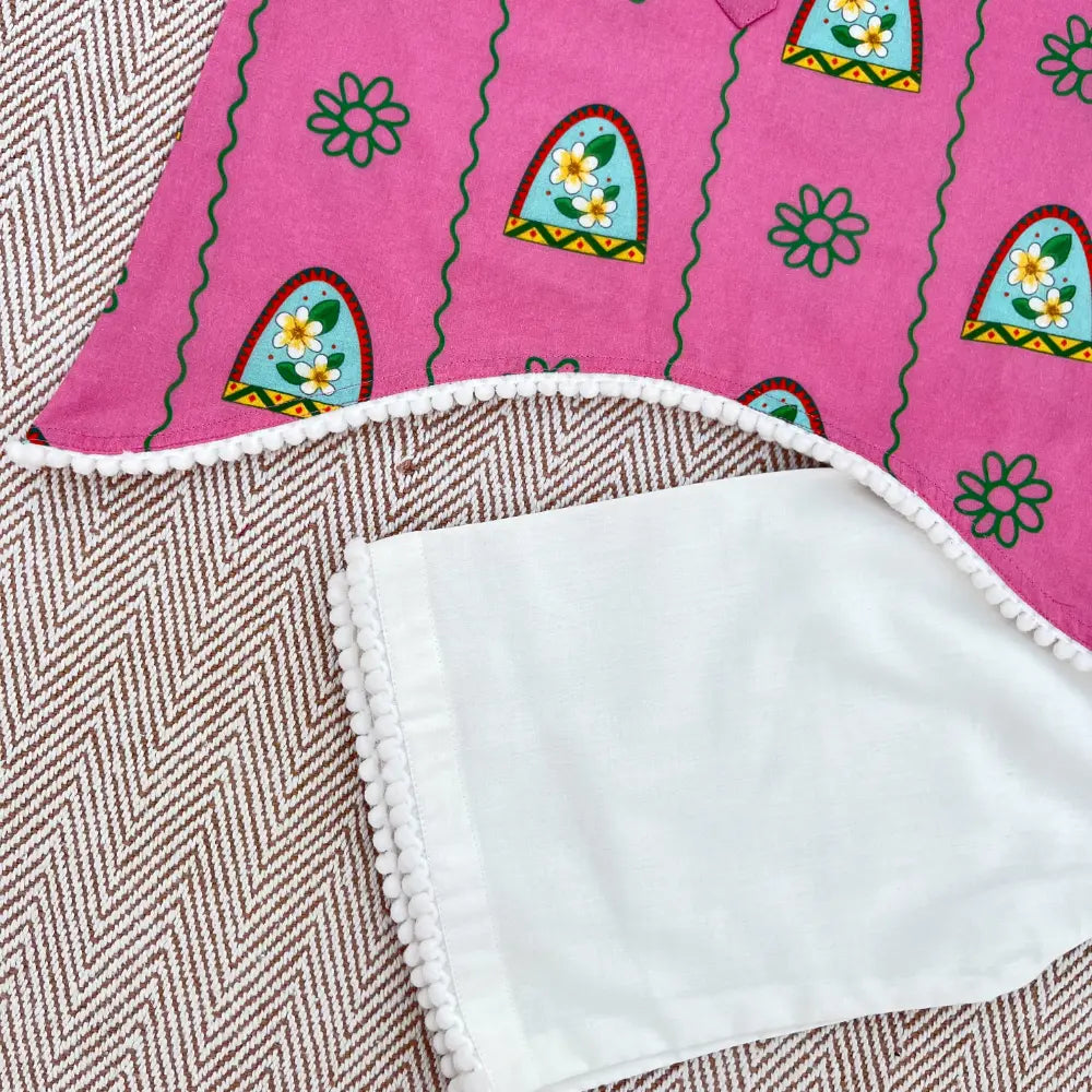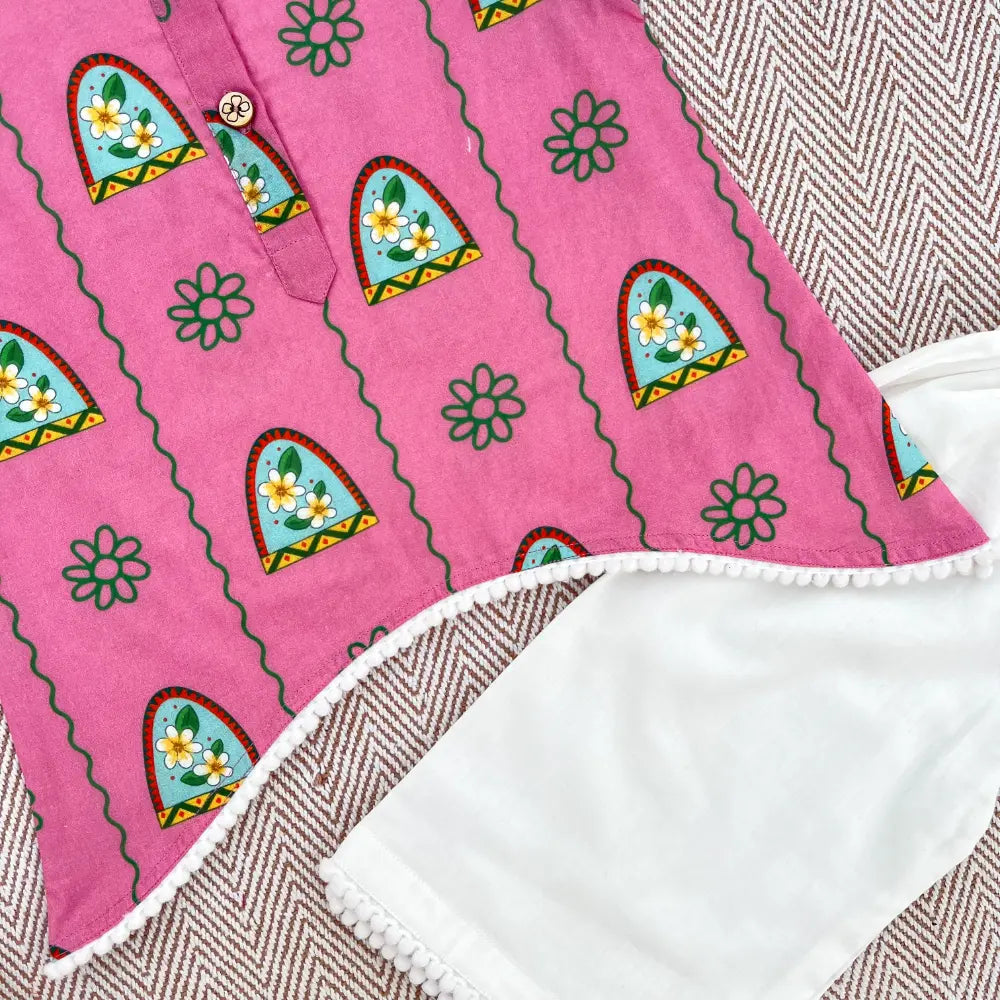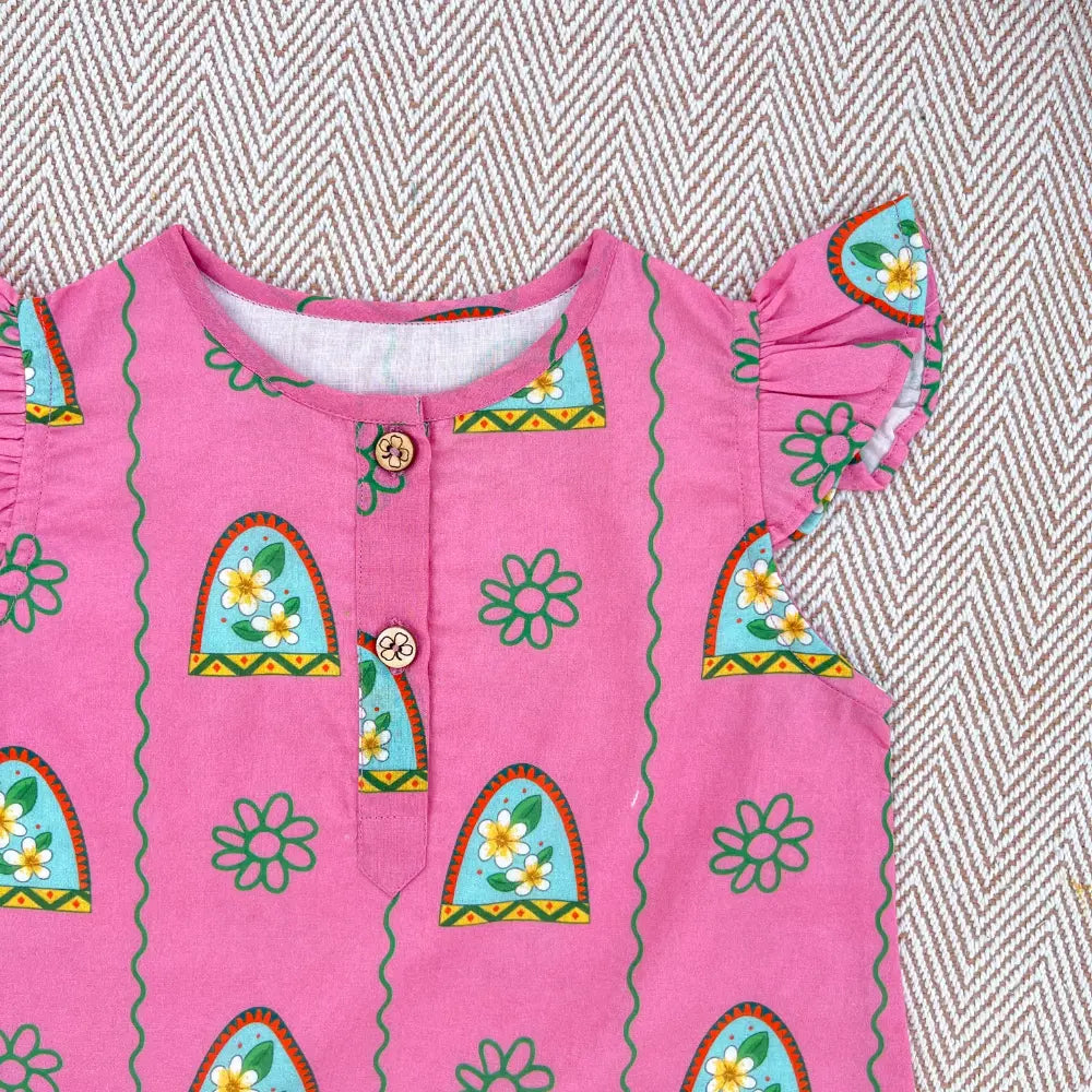 This kurta set is inspired by the sweet memories of summer days spent at Nani’s house. Covered in pretty Champa flower prints, it brings a touch of freshness and warmth to your little one’s look. Made from soft, breathable cotton, it’s gentle on the skin and perfect for all-day wear — whether for a family get-together, a festive celebration, or just a cozy day at home.