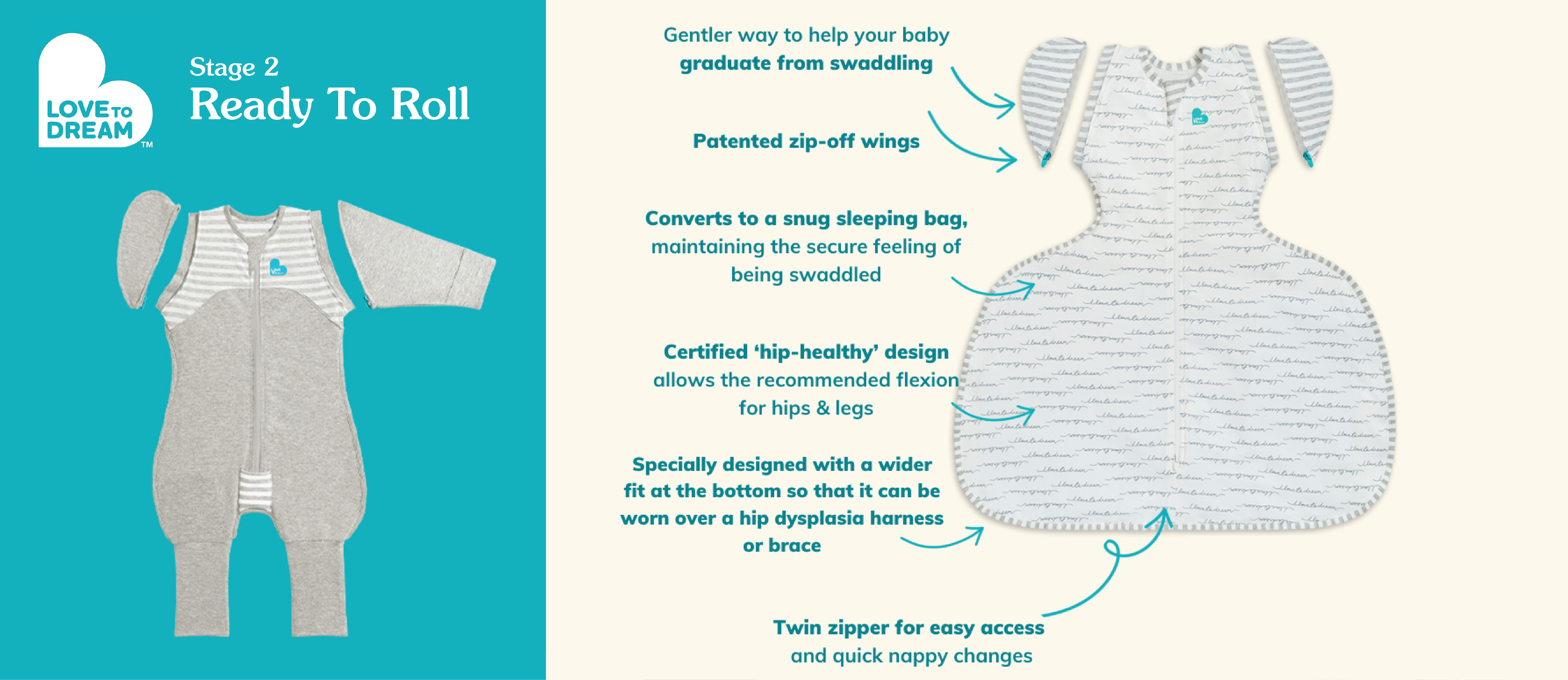 Effortlessly transition from any swaddle with the innovative Love to Dream™ transition bag, maintaining that snug, secure feeling your baby loves.