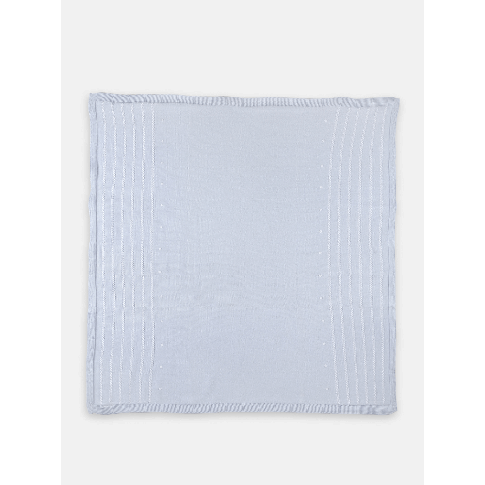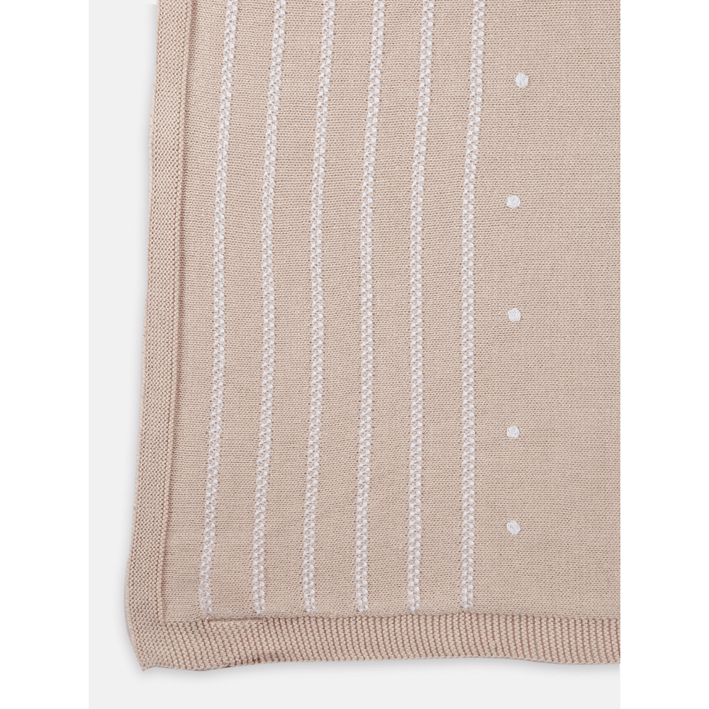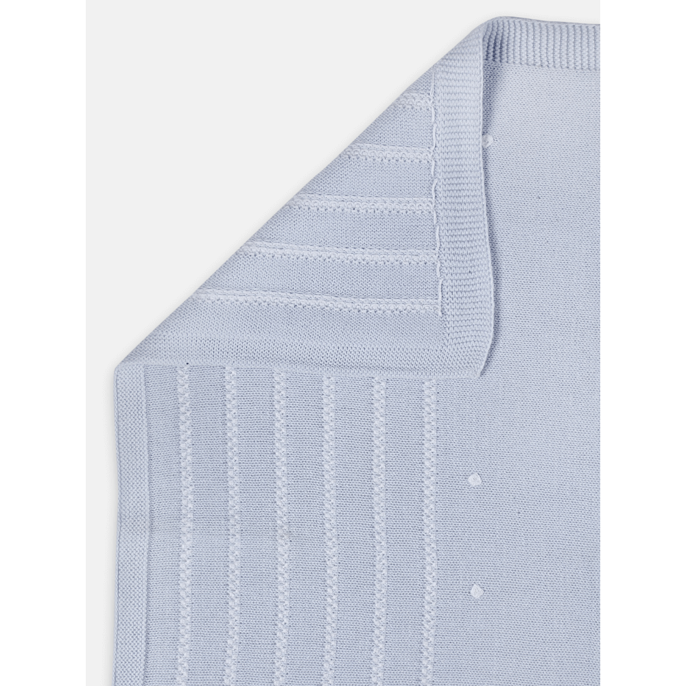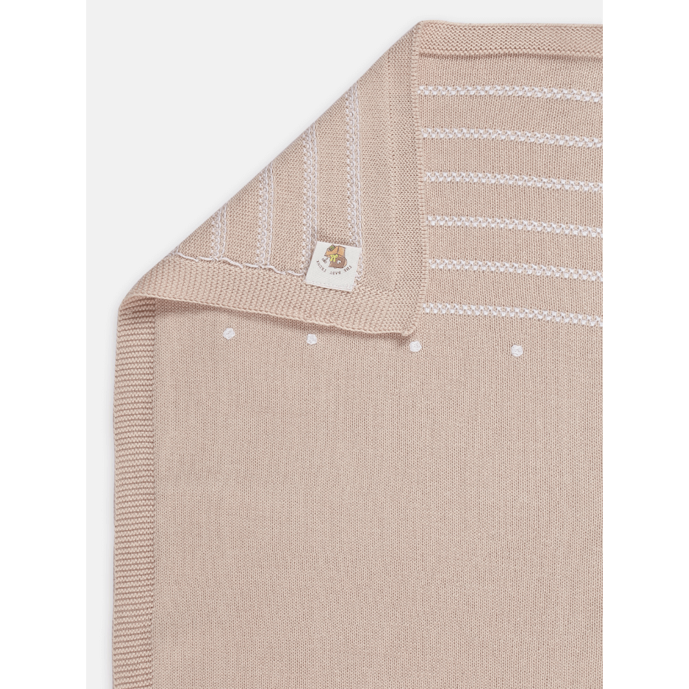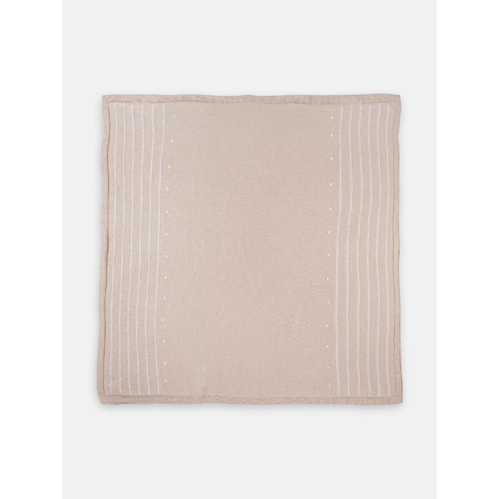 This chic and luxurious knitted blanket with vertical embroidered stripes is a beautiful and practical gift for a baby.