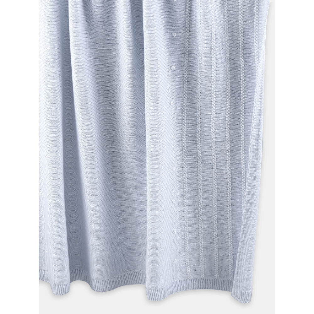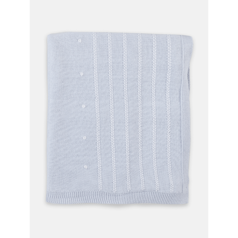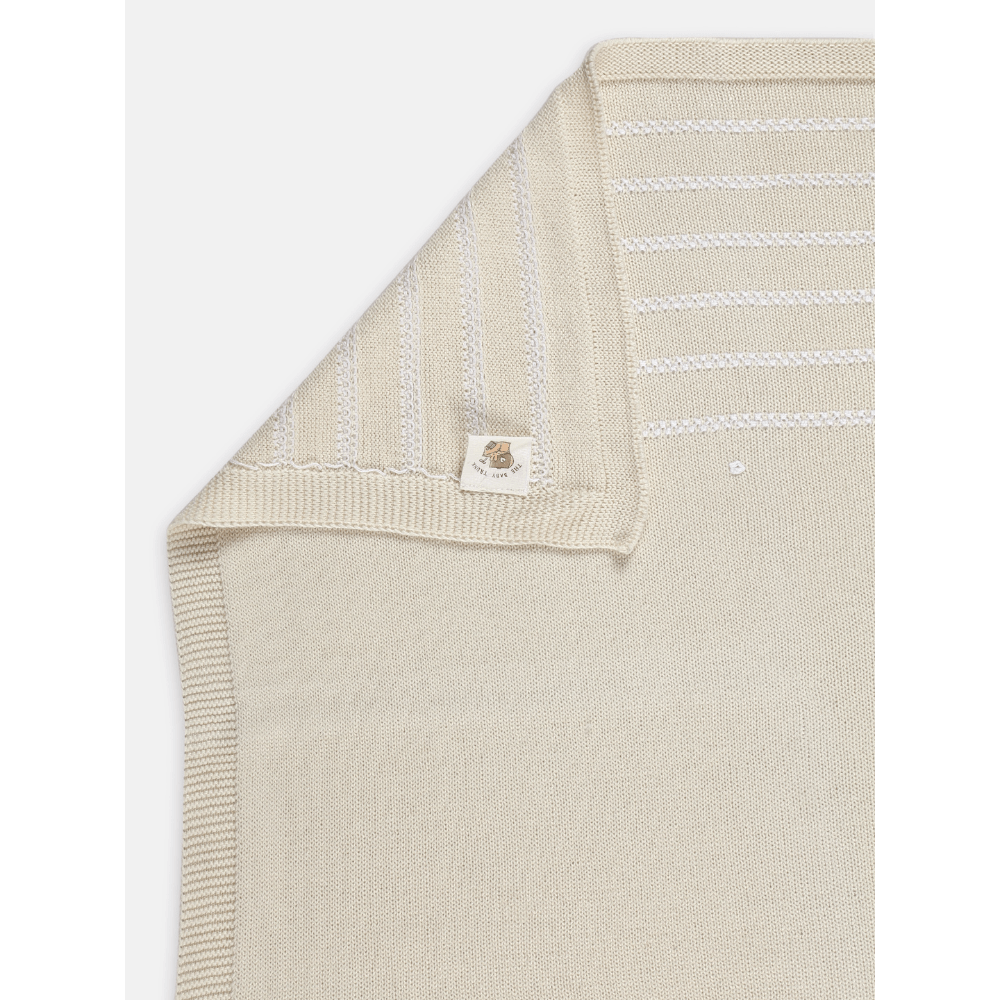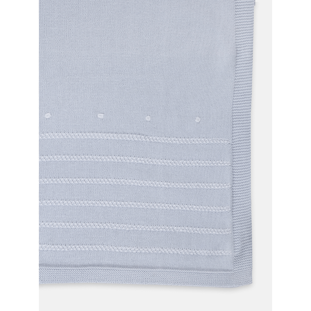This chic and luxurious knitted blanket with vertical embroidered stripes is a beautiful and practical gift for a baby.