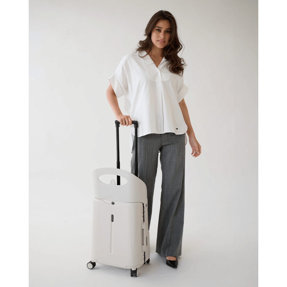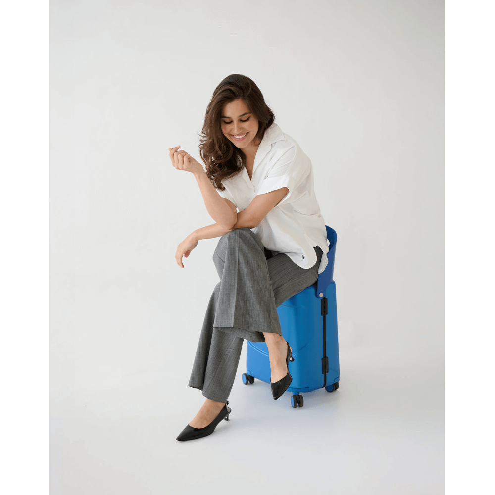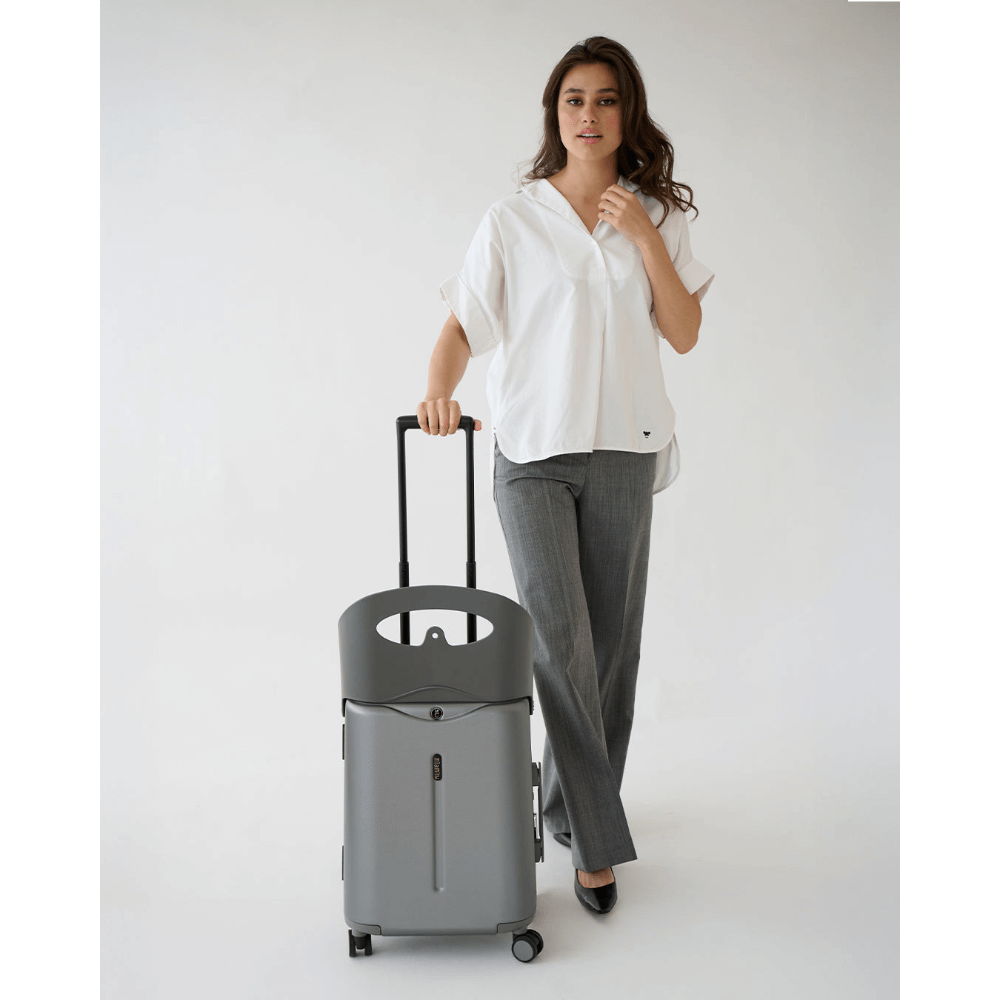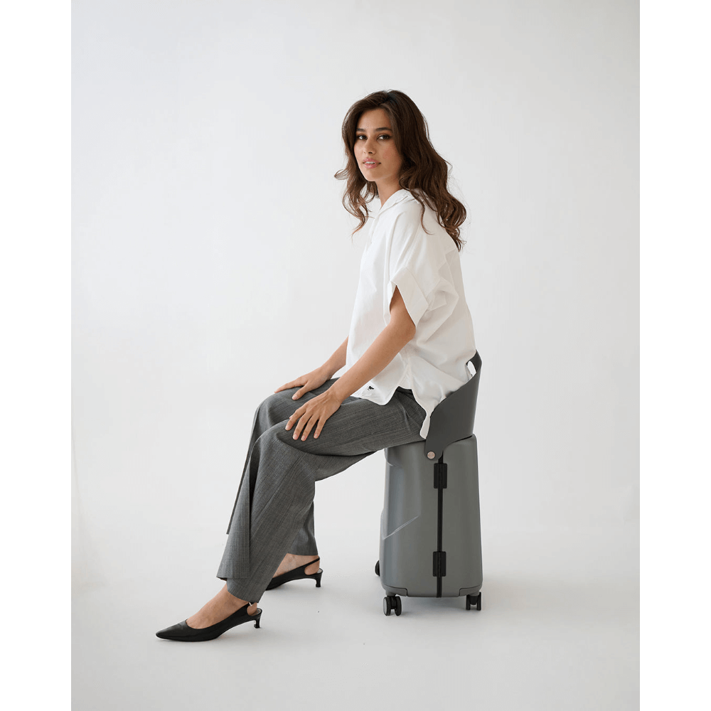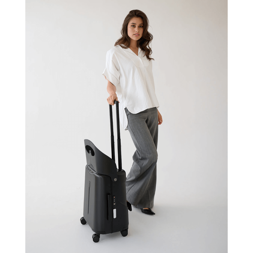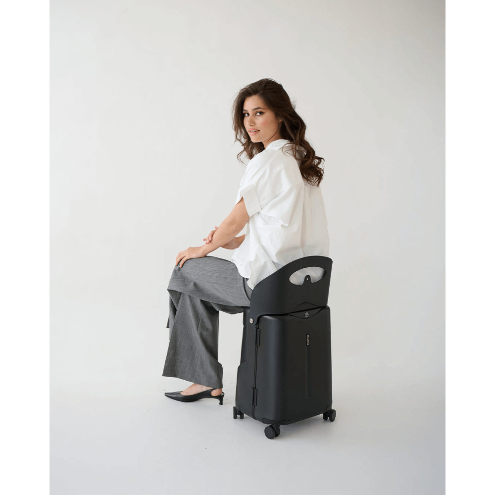 This carry-on was designed to do more than just hold your essentials — it supports you, literally. With a patented built-in seat that holds up to 220 lbs, it offers a quick seat for adults, a safe ride for kids and a stable spot for stacking other bags. A built-in safety belt adds peace of mind, and its compact size fits in most overhead bins (always double-check with your airline). A smarter, more comfortable way to move through every leg of your journey.
