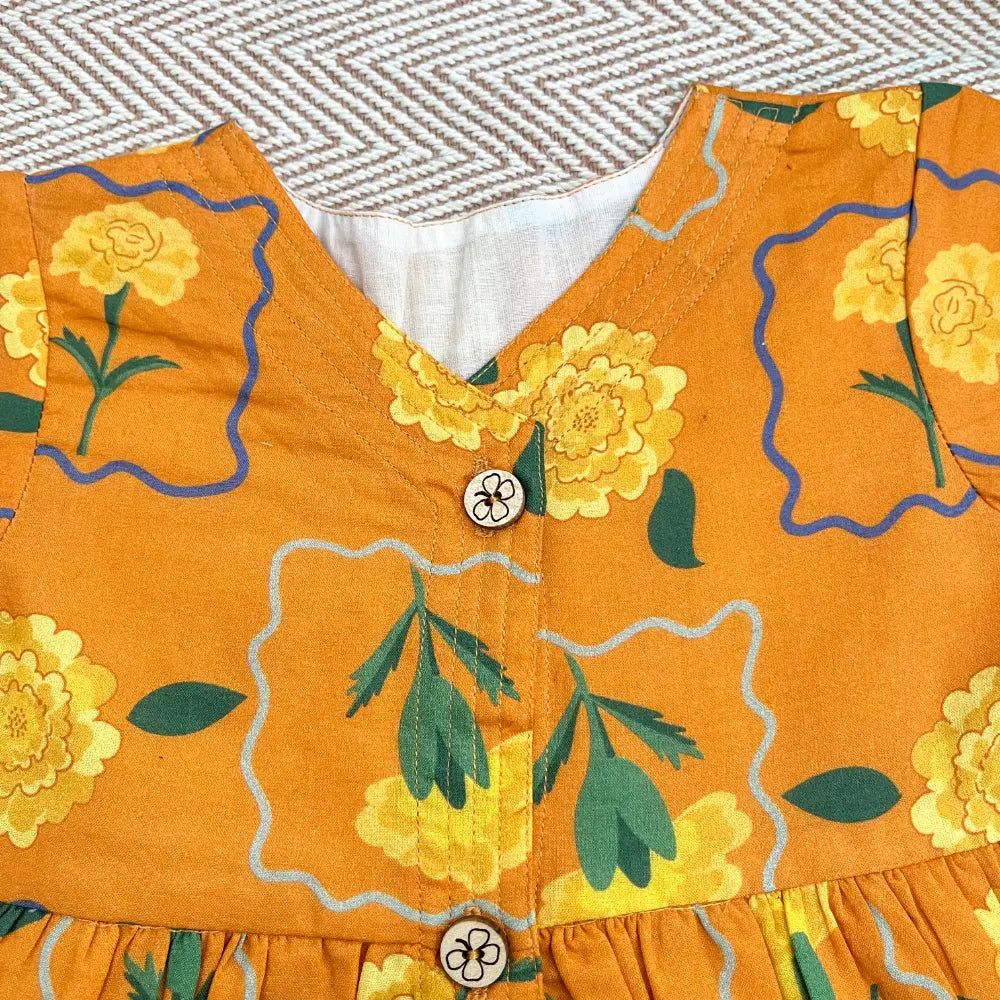 Bhaakur Organic Cotton Frock| Infants and Toddlers| Marigold Orange