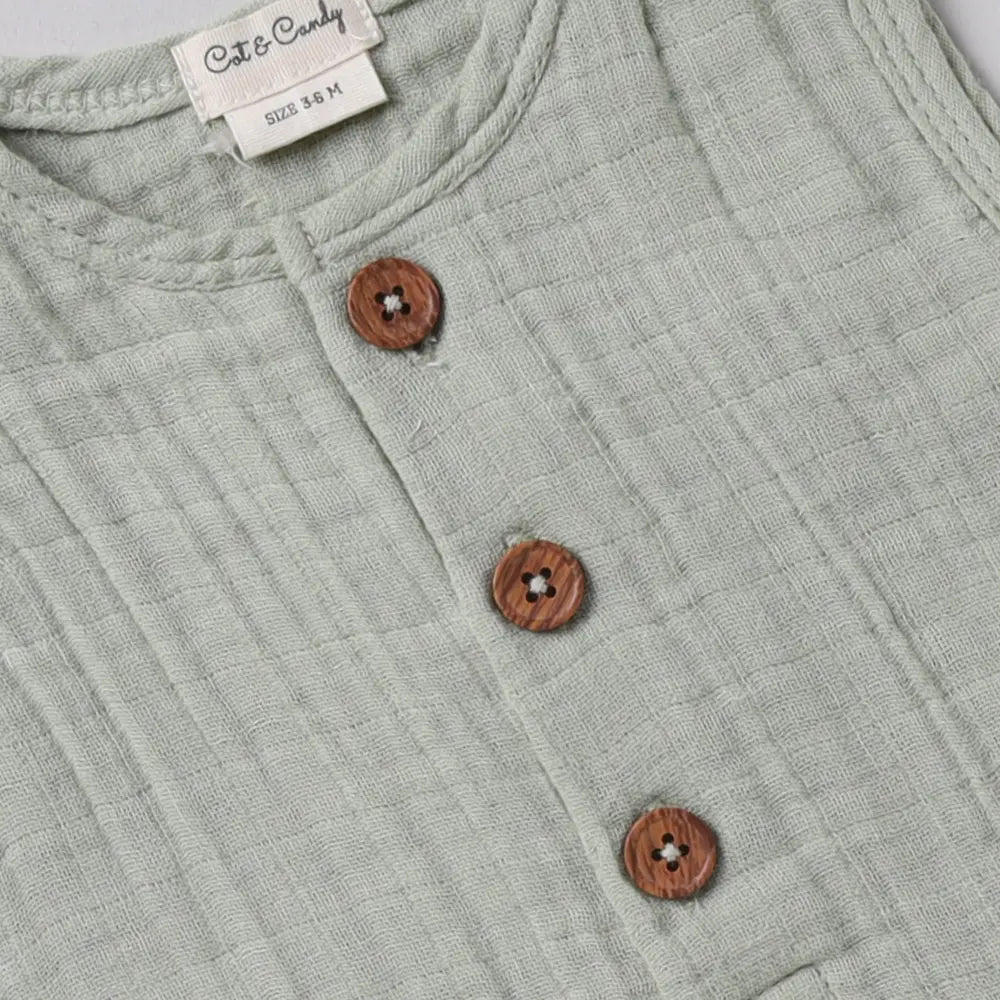 Cot & Candy Baby Organic Muslin Half Romper Pack Of 2-Milk + Sage