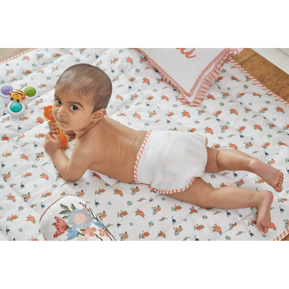 These premium quilted play mats, each measuring 100 cm x 100 cm, are designed to create a safe, cosy, and playful space for little ones. Crafted with soft padding and charming designs—from floral patterns, whimsical bunnies, and delicate butterflies to magical moons, elephants, playful dogs, and adorable teddy bears—each mat adds a touch of warmth and fun to any nursery. Perfect for tummy time, crawling, rolling, or play, their cushioned texture supports comfort and movement while encouraging sensory exploration. Lightweight, portable, and foldable, these mats are easy to store and carry, making them ideal for both at-home use and on-the-go adventures. Suitable for babies and toddlers up to 2 years, they bring together style, comfort, and practicality in one delightful package.