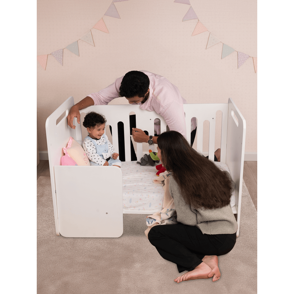 Meet the Buddy: a crib that grows with your child. From a cosy crib to a toddler bed, and finally into a study table, the Buddy is your child’s companion through every stage of early childhood.