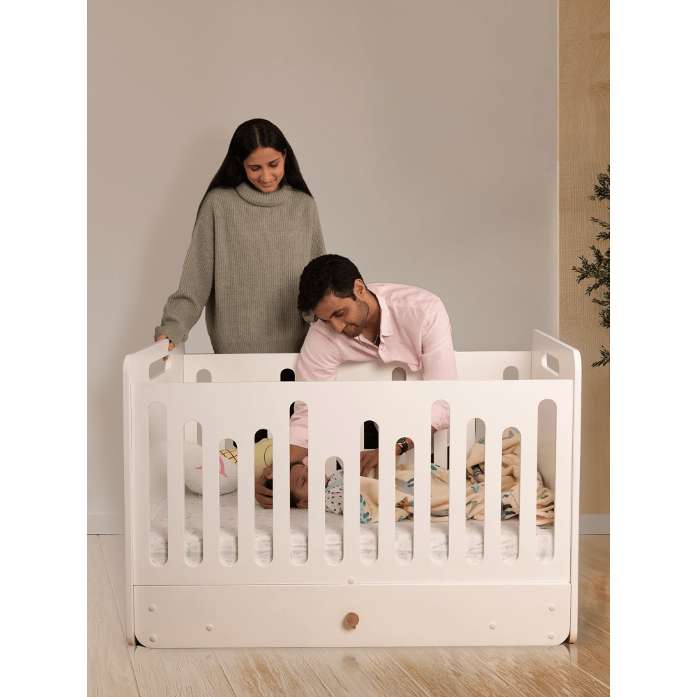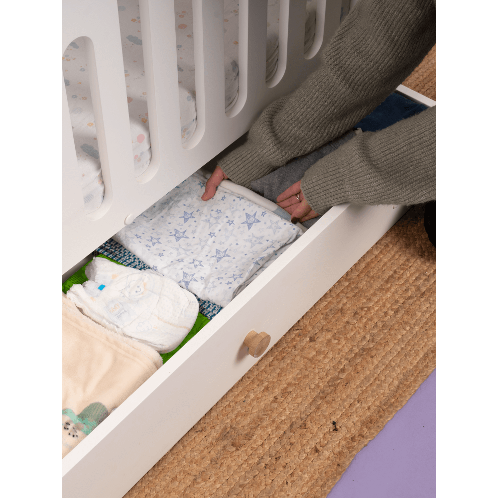 A crib that keeps all your little one’s essentials close at hand, the Treasure is thoughtfully designed with a storage drawer, perfect for stashing toys, blankets, and baby necessities.