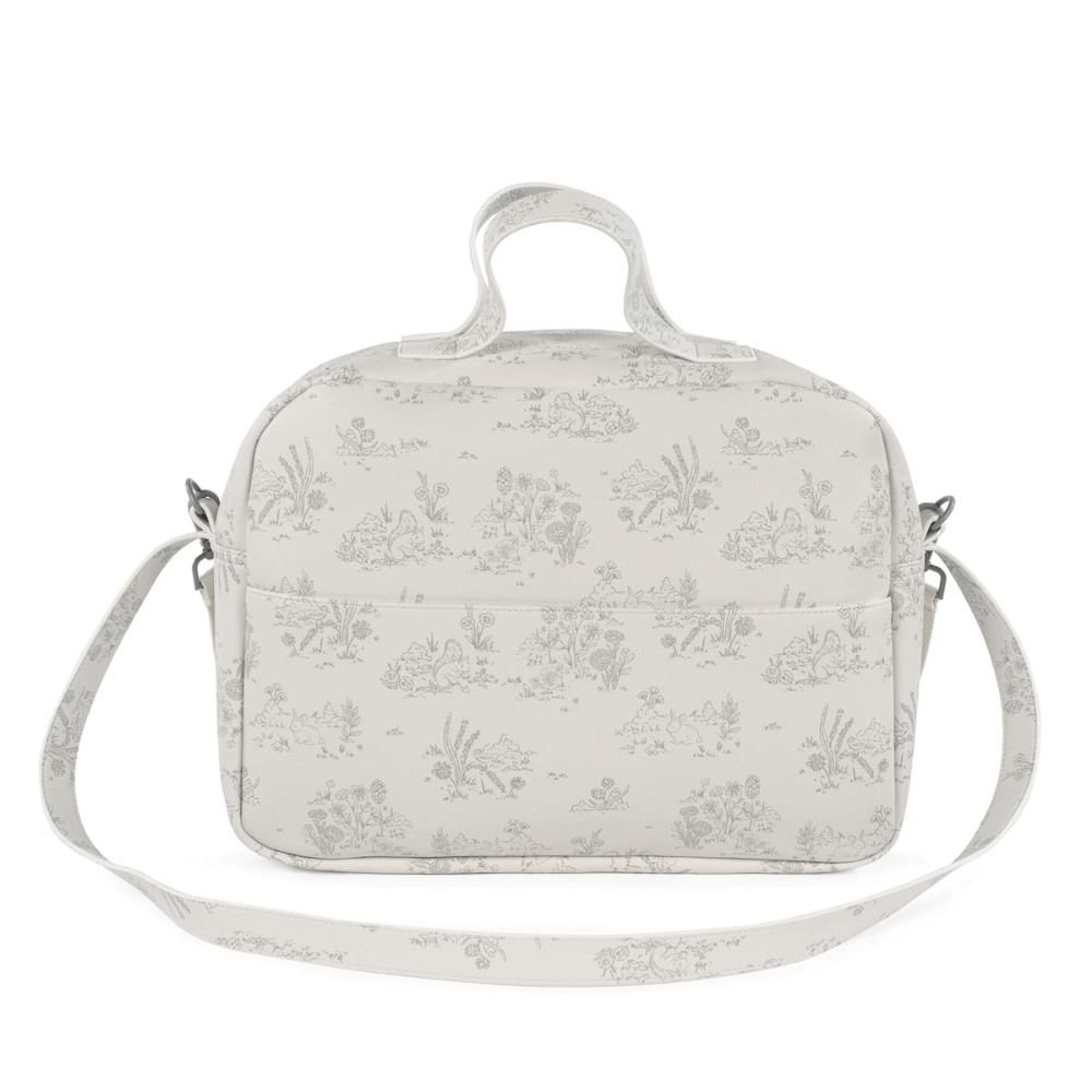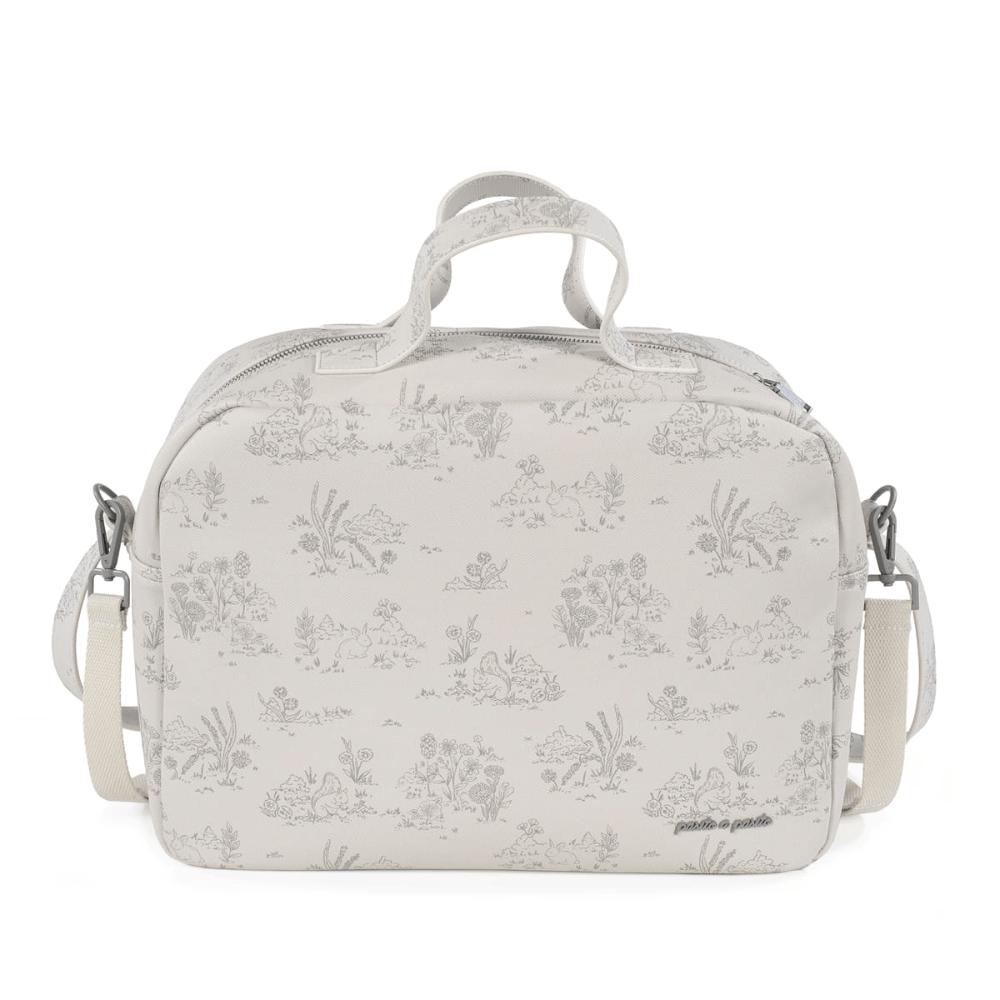 The Toile de Jouy Baby Stroller Bag from Pasito a Pasito is a unique and elegant model available in Cream shade. Crafted from resistant yet delicate printed eco-leather, it’s designed to carry everything your baby needs when leaving home while maintaining timeless style and practicality. This spacious and stylish bag comes with double handles — a long one for hanging over the shoulder and short ones for hand carrying. It also includes universal stroller straps, allowing you to attach it easily to any stroller. Whether used for daily outings or as a hospital baby bag, it offers both functionality and sophistication. Designed with premium quality finishes, the interior is fully lined and thoughtfully organized with multiple pockets — including a thermal pocket for bottles and a plasticized pocket for wet clothes. Additional compartments hold essentials like diapers, wipes, creams, and feeding accessories. An external rear pocket provides quick access to frequently used items, and a matching changing pad is included for added convenience.