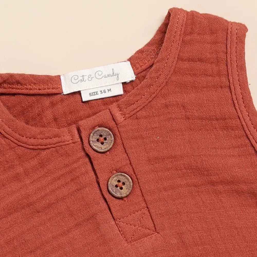 Cot & Candy Baby Organic Muslin Bubble Romper Pack Of 2-Latte + Picante