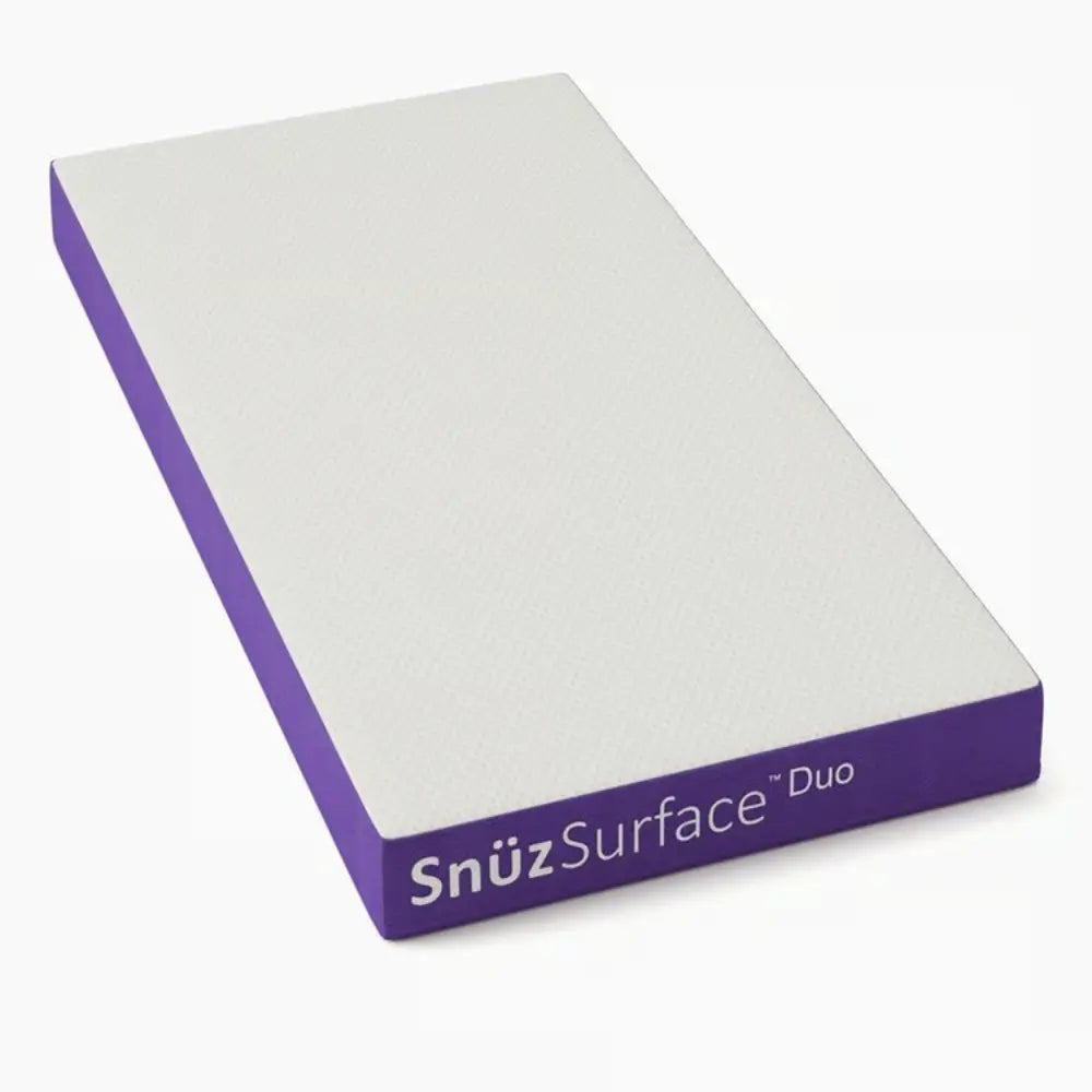 - Includes the SnuzSurface Duo Mattress that has a waterproof layer, two firmness levels, and a machine washable cover