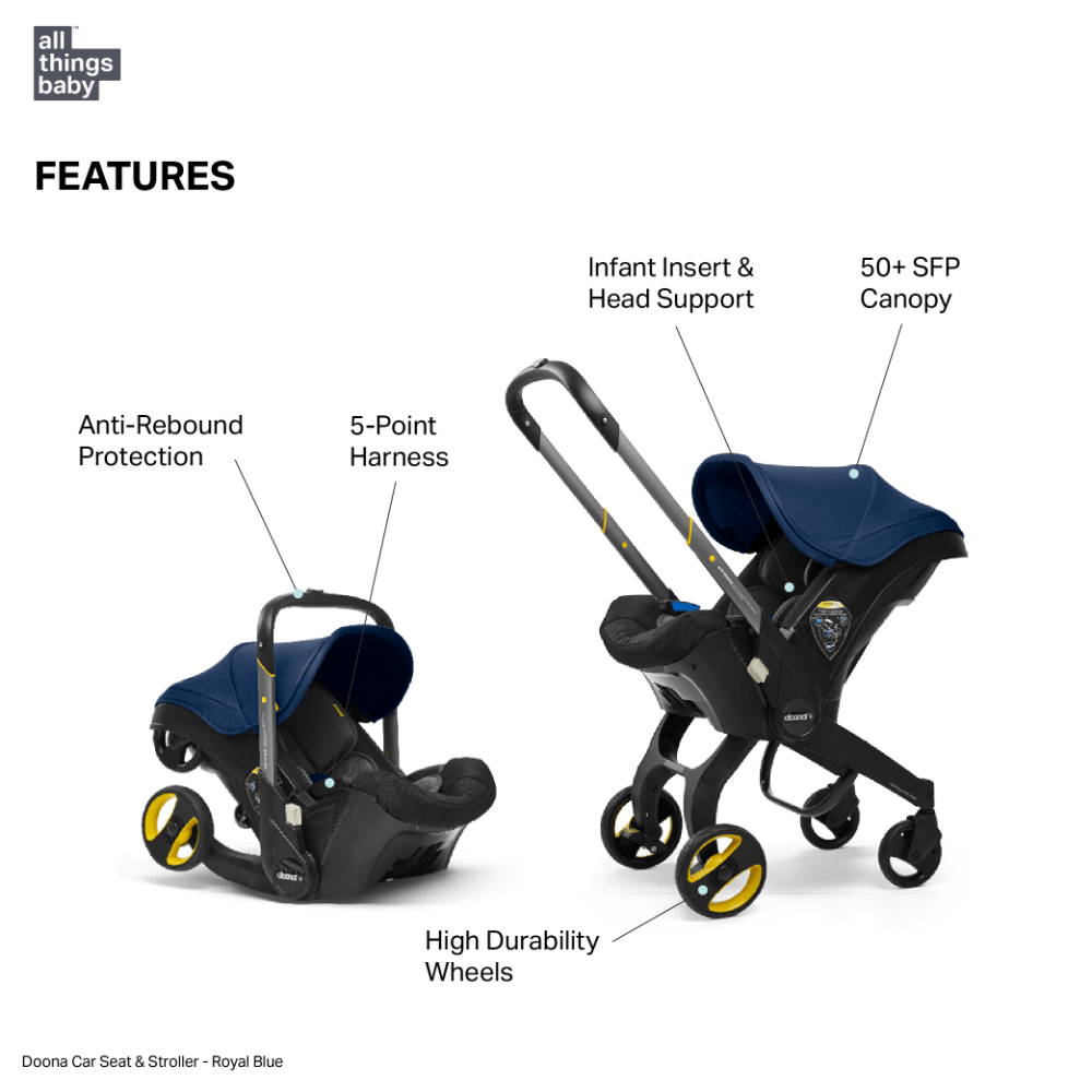 Doona is the only car seat to have been tested and certified as an Infant Car Seat, a Stroller and an infant carrier providing overarching safety for your child in all circumstances. With its unique 3-layer side impact protection, Anti-Rebound Bar crash technology, superior 5-point safety harness and ergonomic infant insert, Doona is one of the safest car seats available today.