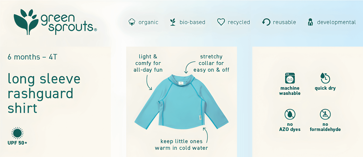 The long sleeve rashguard swim shirt provides all-day coverage to shield your little one in and out of the water. UPF50+ and quick dry material provides the ultimate comfort for safe fun in the sun.
