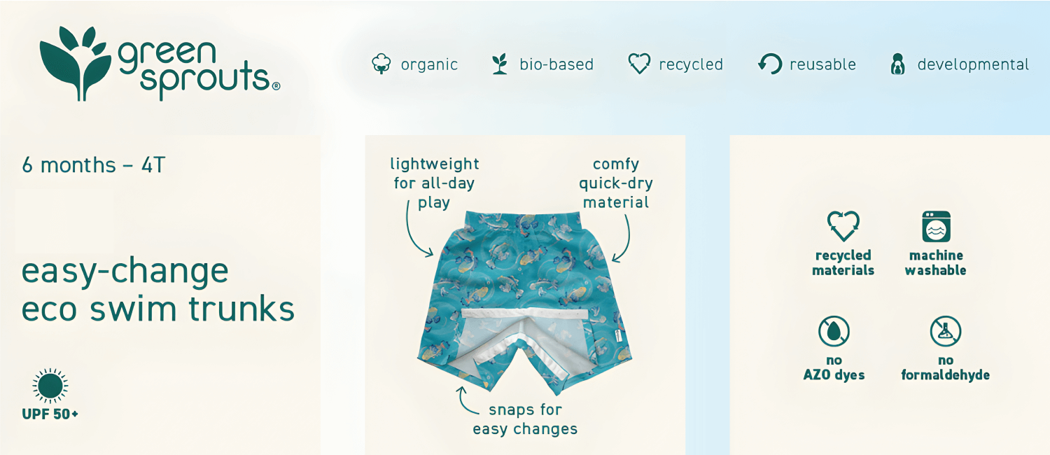 Quick-dry and comfortable swim trunks that allows your little one to move freely. Pair it with the reusable swim diapers for extra protection.