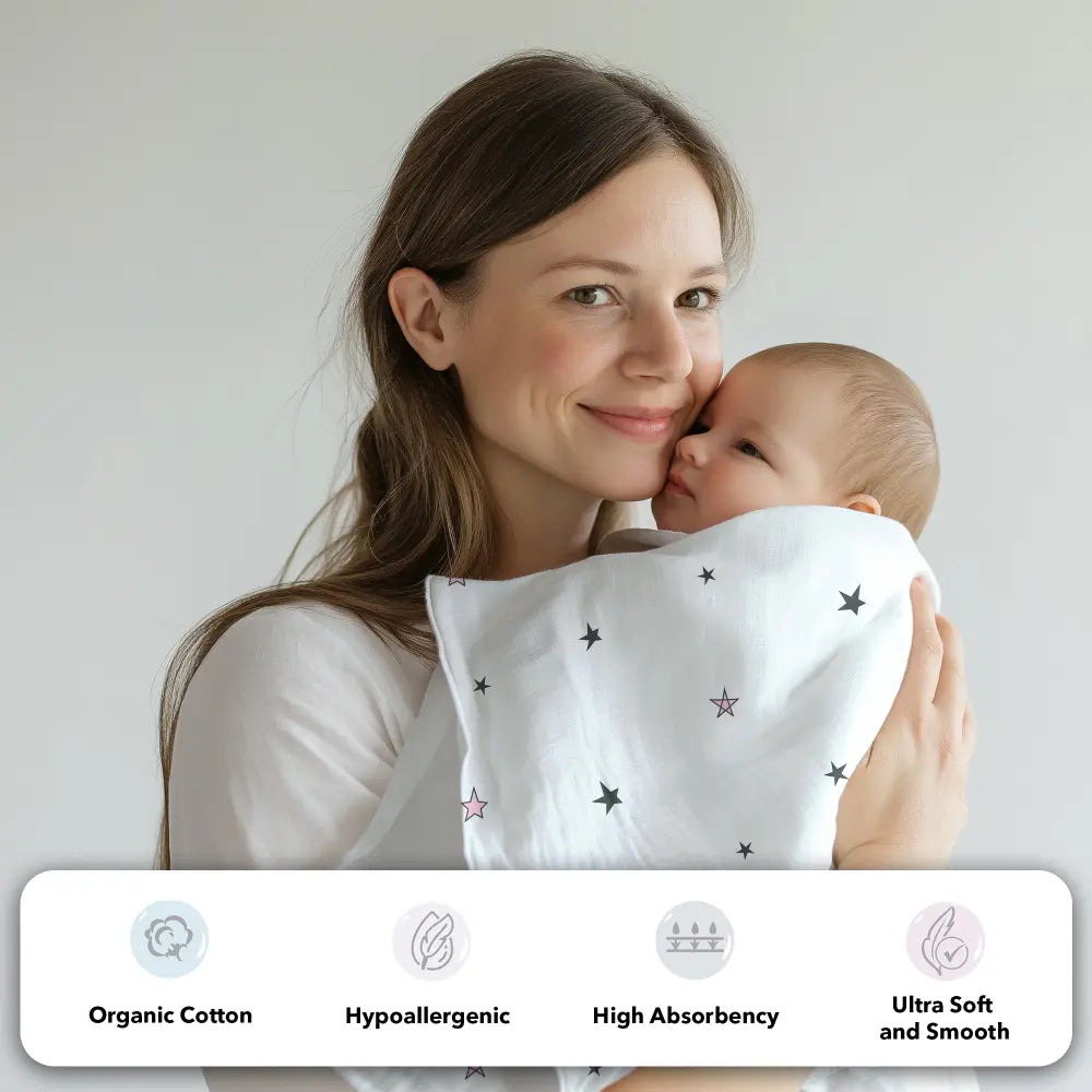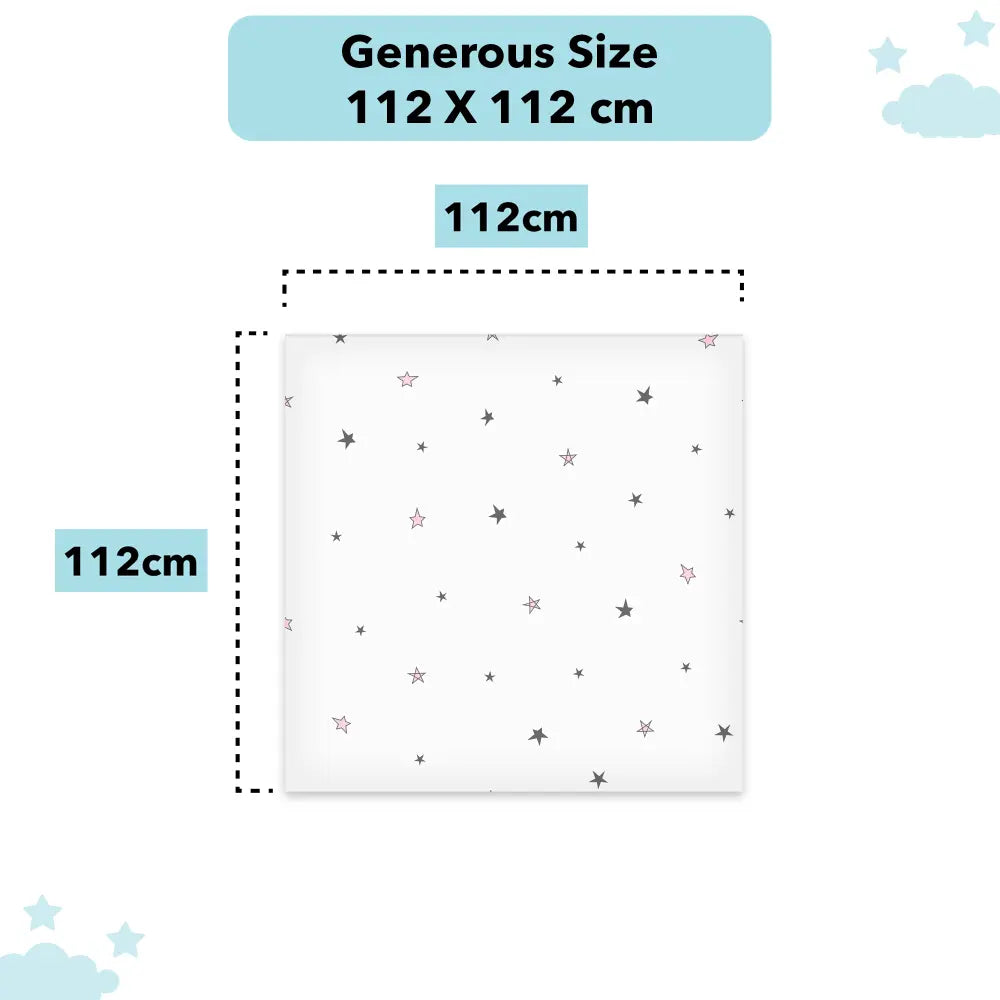 • MULTIPLE USES: 112 cms x 112 cms (44" x 44"), one of the largest sizes available. You can use it from from 0-18 months. Perfect for wrapping infants to toddlers. Also use it as a Nursery Swaddling Blanket, as a burp cloth, as a sheet during changing, as a light blanket during warm weather, or as a sun cover on prams. We’ve made it large so that you can use it everywhere!