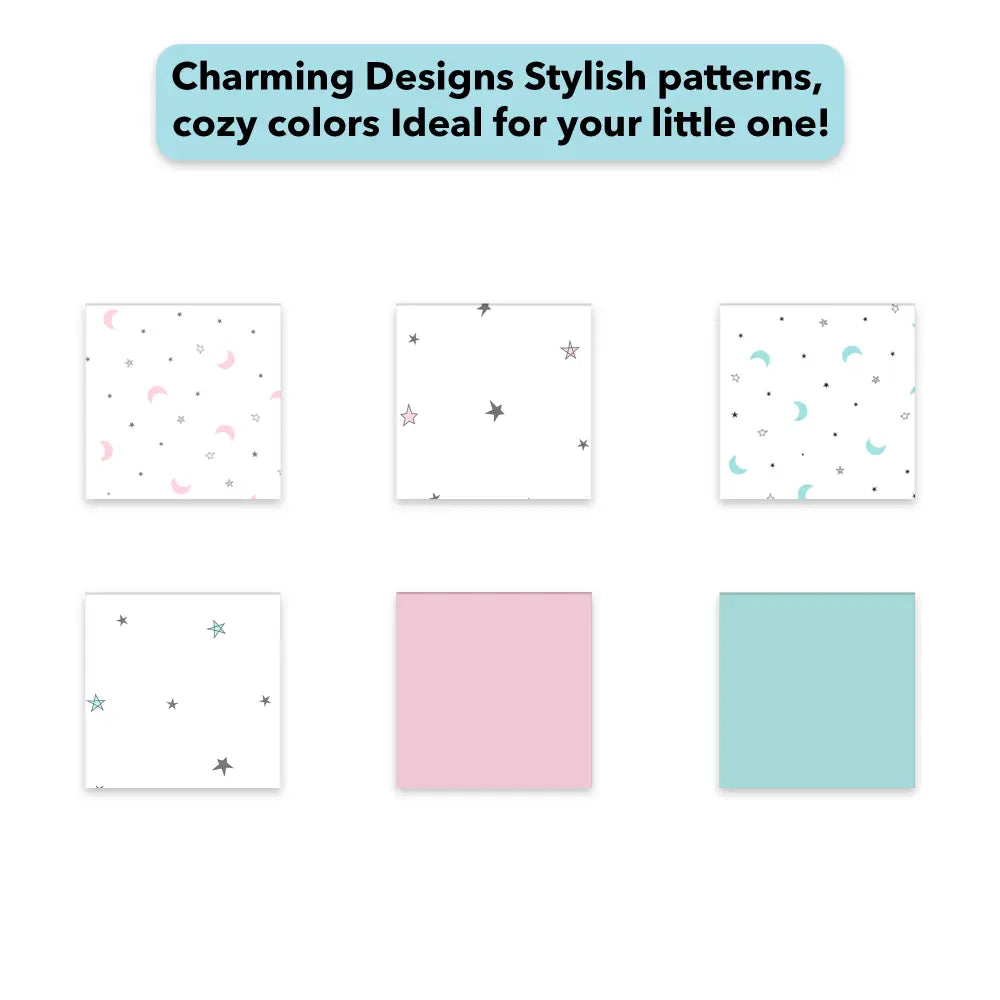 • DESIGNS: We’ve used beautiful baby prints that’ll be a perfect addition to your baby’s nursery. The color-fast printing means that you can throw it in the machine to wash with warm water without the fear of fading. Our premium muslin fabric will get softer & softer with each wash.