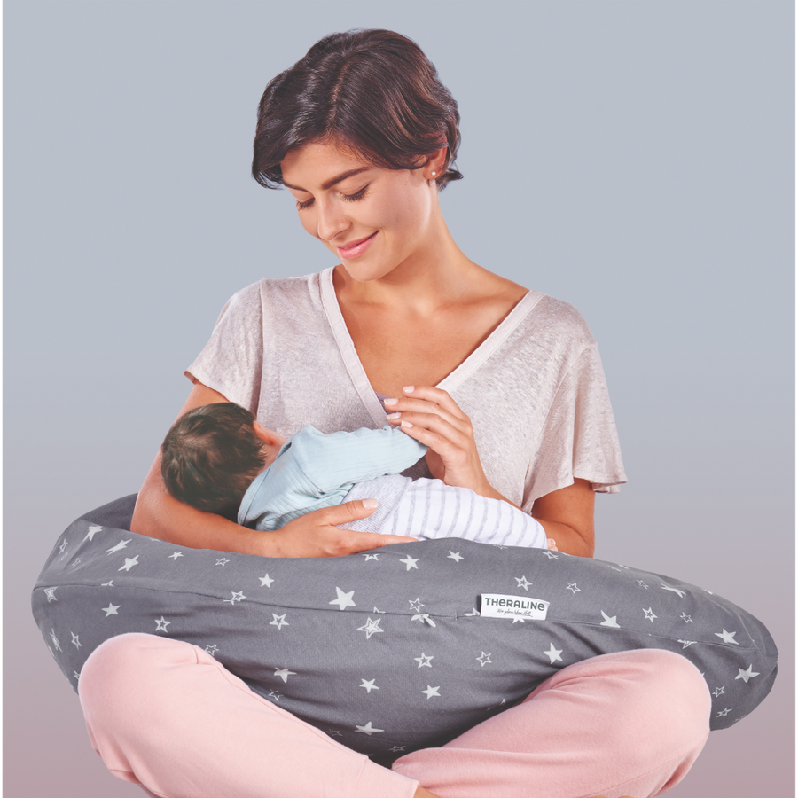 There are many ways to use the Theraline Pillow, from Back and Belly Support to Breasting and Tucking your Baby in, it can be used in multiple ways.