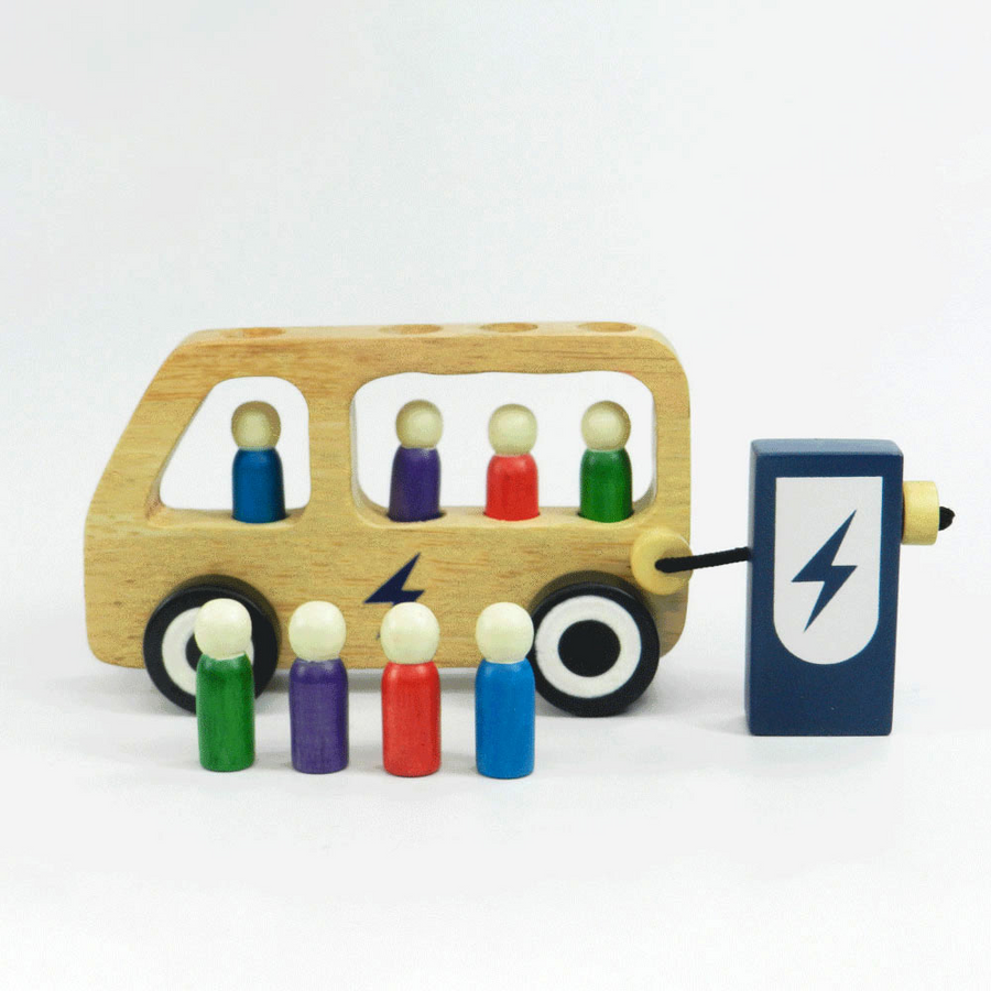 - EV Jeep Set Includes: 1 Jeep and 1 Artificial wooden electric charger, made of non-toxic water-based paint Manufactured by a good quality wood-casting process, it is sturdy and resistant to play and hard to damage.
