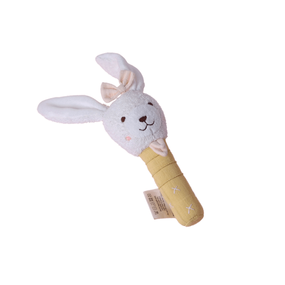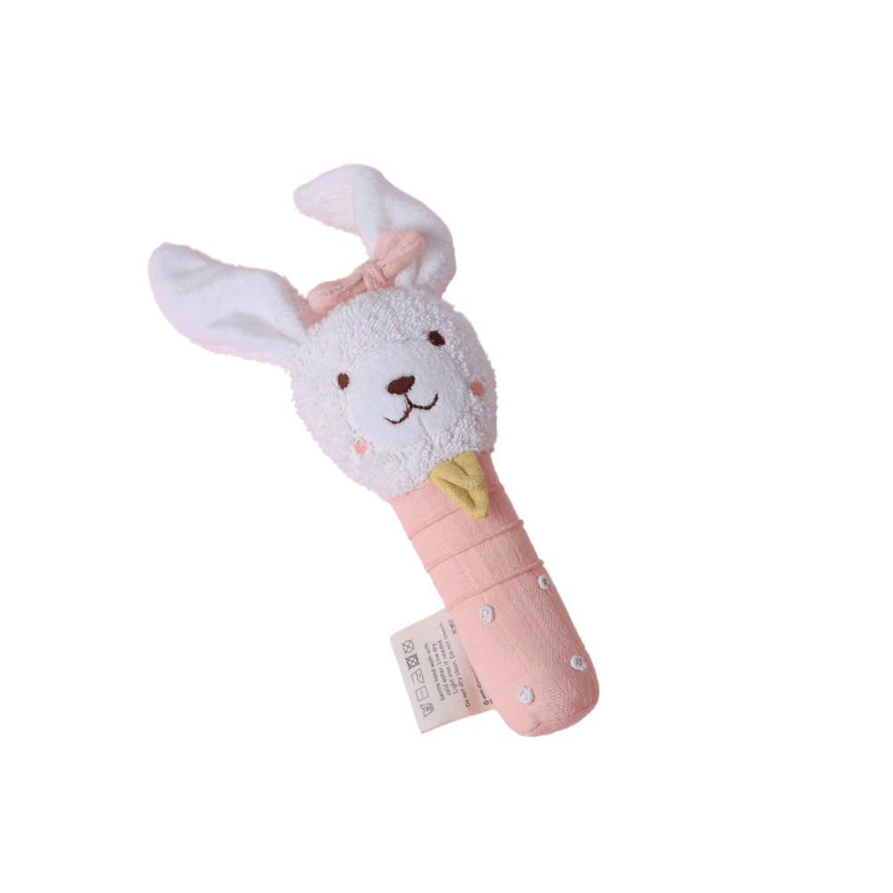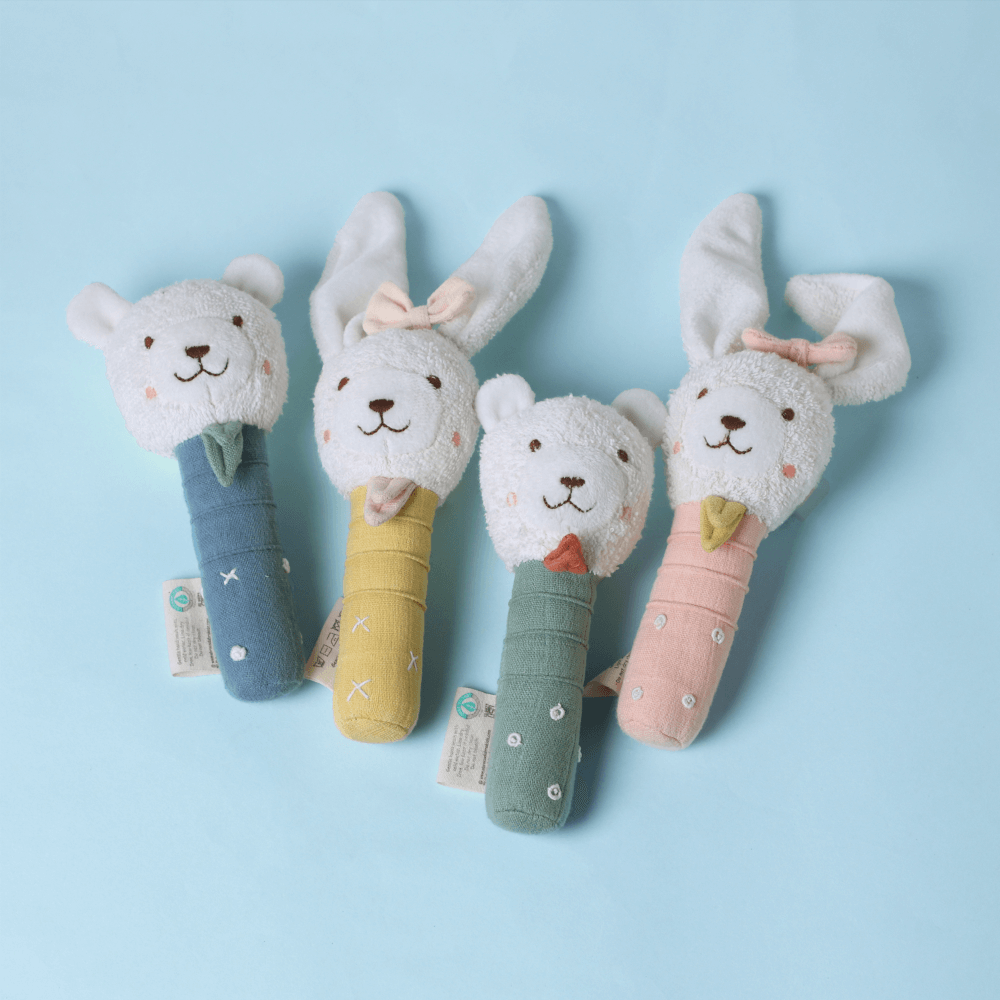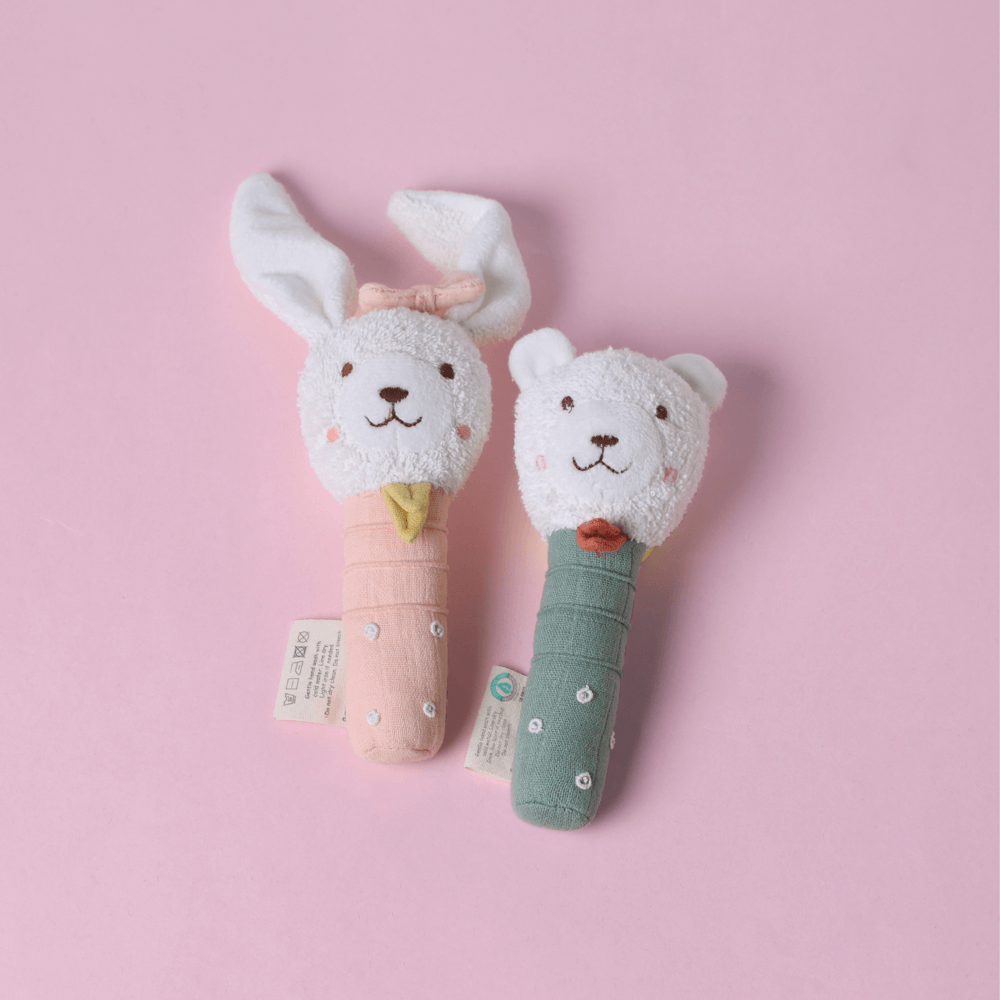 Introduce your little one to their very first friend with our charming collection of hand rattles. Designed to delight babies with every shake, these plush rattles feature gentle sounds, embroidered details, and irresistibly cute animal faces. The easy-to-grip fabric handle is crafted from soft cotton in soothing colours and decorated with delicate stitching. Whether used for playtime, tummy time, or on-the-go entertainment, these rattles encourage sensory development and offer comforting companionship.