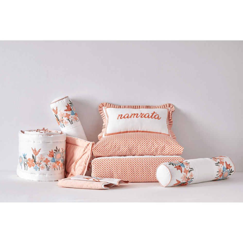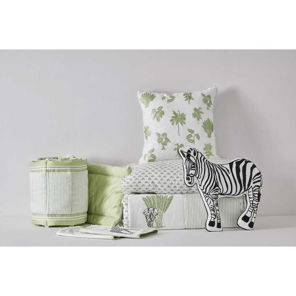 A perfect blend of elegance, comfort, and storytelling, the Crib Bedding Set collection brings dreamy themes to your little one’s nursery. The Blossom Crib Set enchants with soft pastels, delicate floral embroidery, and timeless charm, while the Masai Crib Set celebrates nature with soothing sage green tones, safari animal motifs, and hand-stitched detailing. Each set includes a fitted sheet, a plush quilted comforter, padded cot bumpers, and delicately embroidered cushions, ensuring both beauty and functionality. Designed to provide ultimate comfort and transform the nursery into a whimsical escape—whether it’s a blooming floral fantasy or a wild safari adventure.