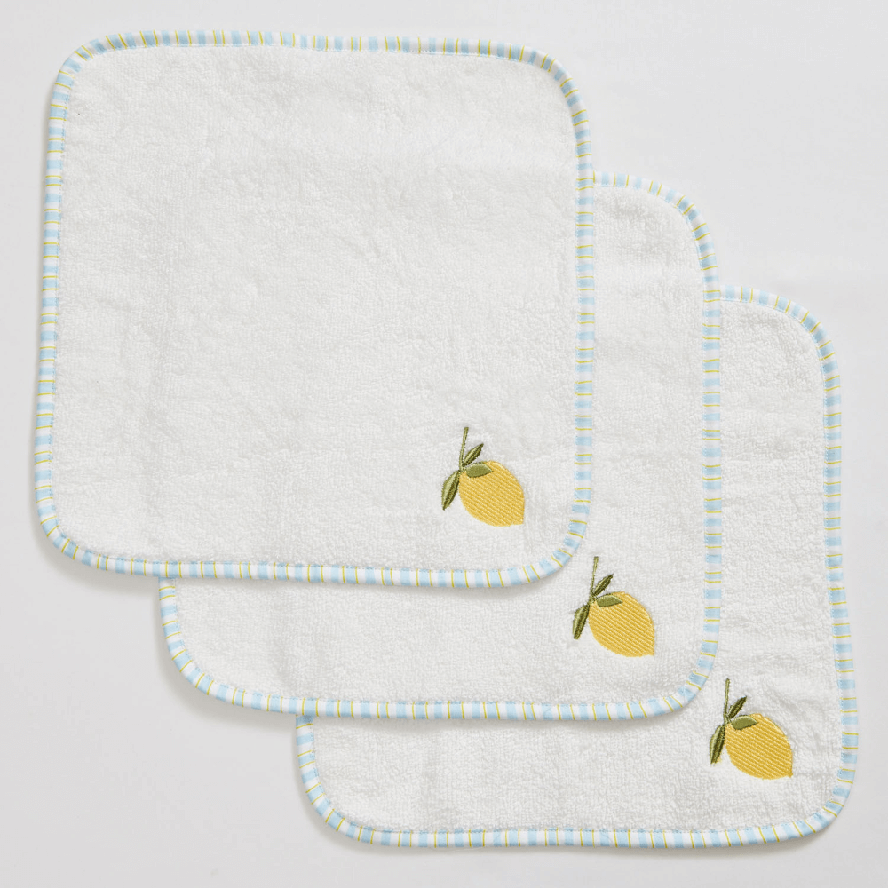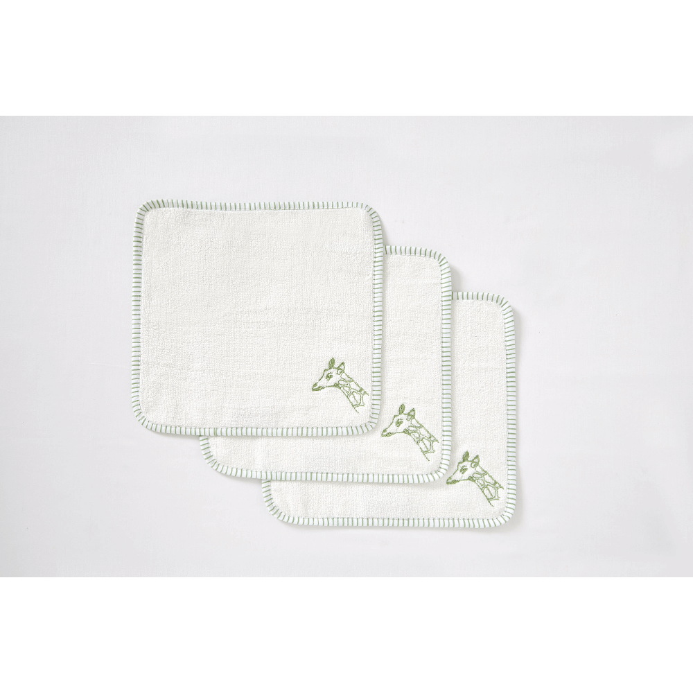 Crafted from plush zero-twist terry cotton, our Face Towel Sets (Set of 3) are ultra-soft, highly absorbent, and gentle on delicate skin—perfect for wiping drool, cleaning after meals, or quick freshen-ups during the day. Each set is detailed with charming embroidery and coordinated piping, making them as stylish as they are practical. Choose from playful designs: Masai with gentle giraffe embroidery and sage green piping, Odyssey with rockets and mustard-Gray piping, Parachute with balloon embroidery and pastel pink piping, Sailboat with delicate anchor embroidery and navy gingham piping, Sicily (Lemon) with cheerful lemon embroidery and striped piping, and Train with a classic embroidered train and striped piping. Soft, durable, and quick-drying, these towels bring both comfort and charm to your baby’s everyday routine.