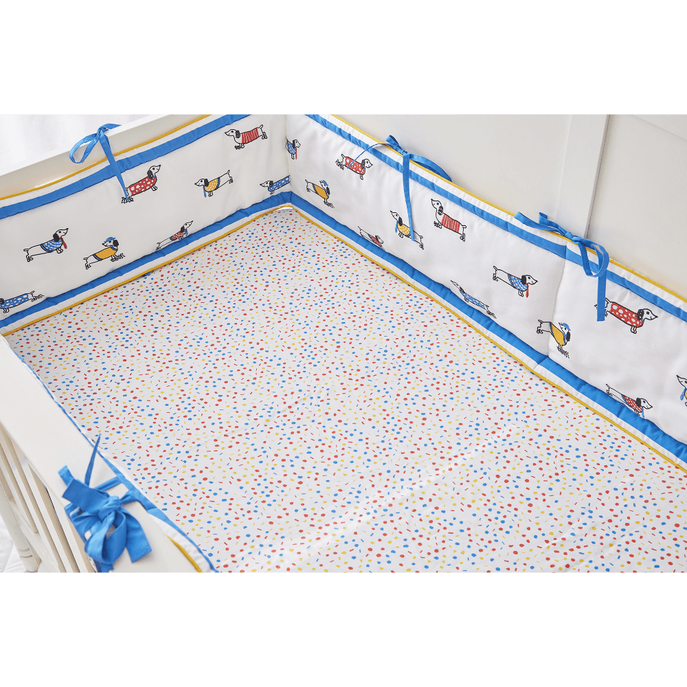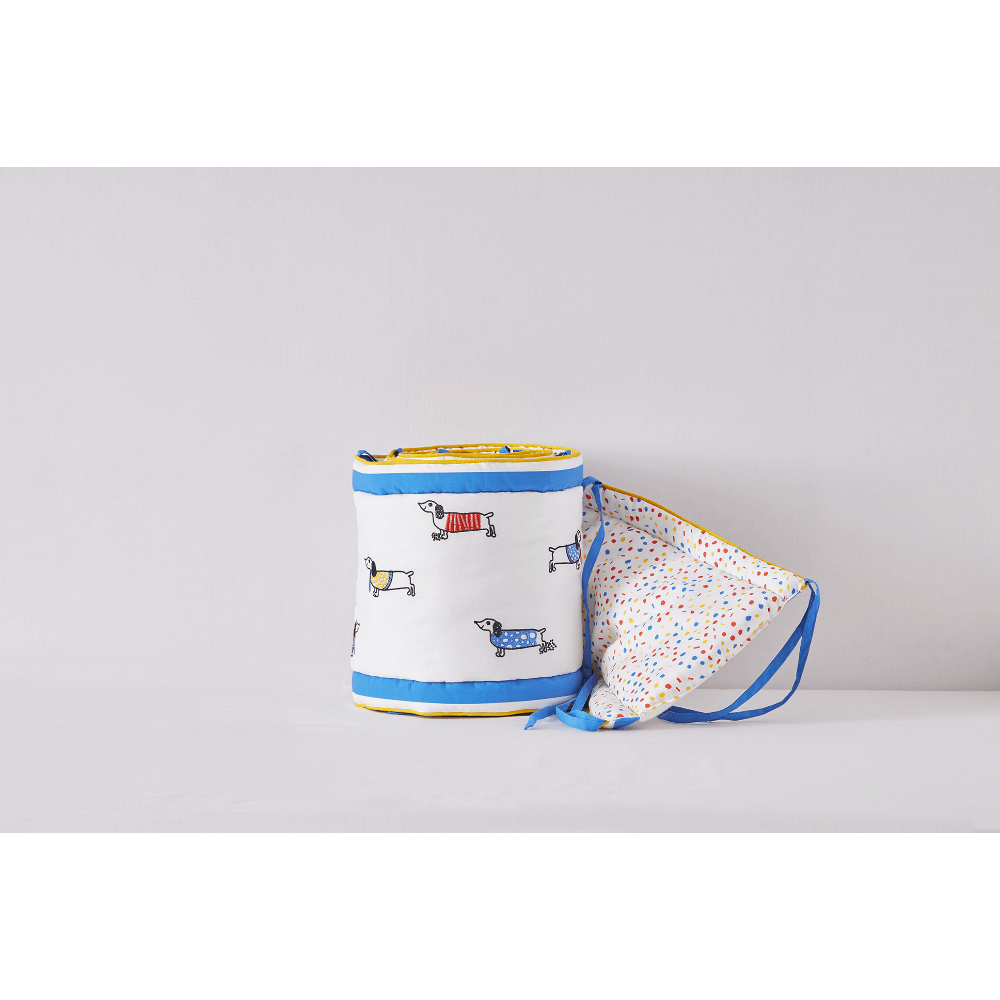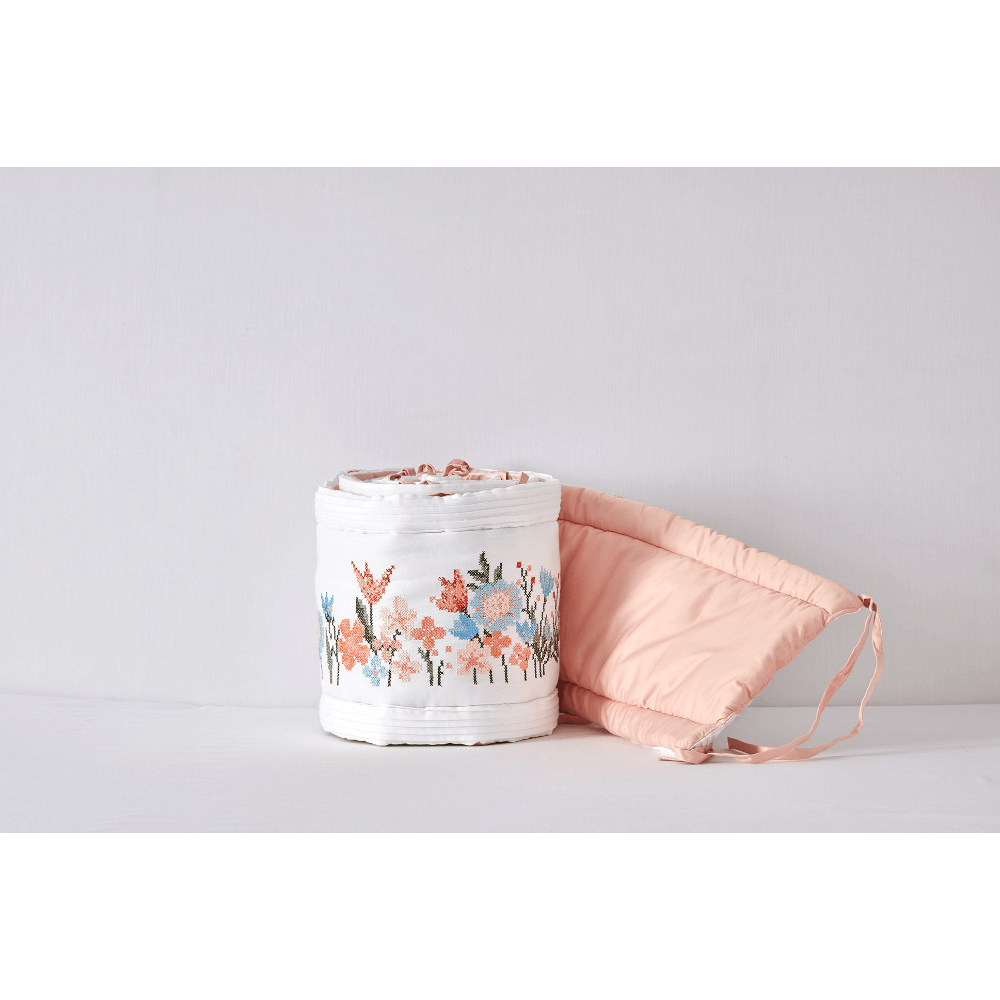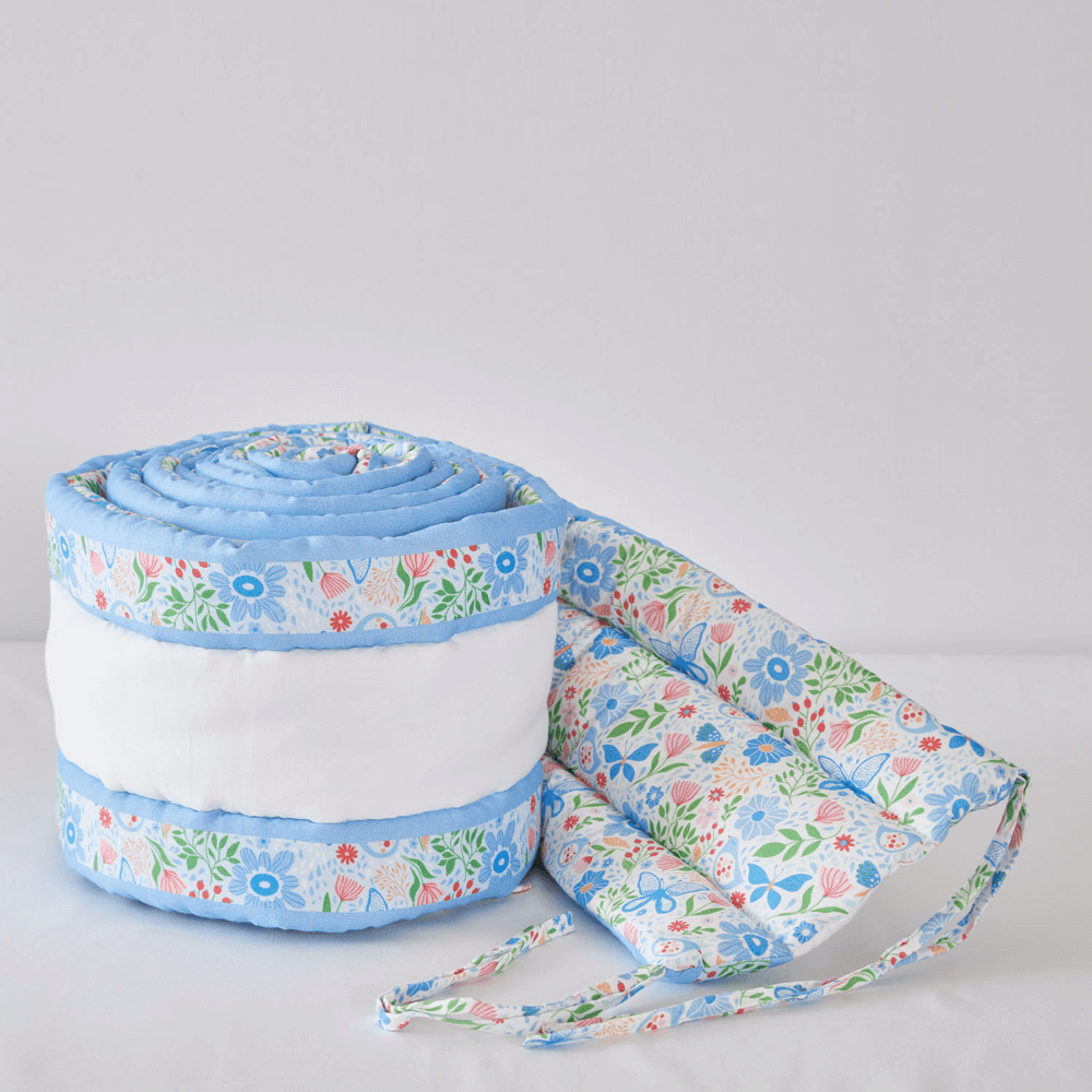 The Cot Bumper Collection brings together a delightful mix of floral elegance, playful motifs, and timeless charm to create a safe and cosy sleep space for little ones. From delicate embroidered blooms in pastel hues, cheerful bunny prints, and serene butterfly gardens to sweet elephant motifs, adorable dog designs, and safari-inspired animal patterns, each bumper is thoughtfully crafted from soft, breathable cotton. Quilted layers with plush wadding provide gentle cushioning and protection against crib rails while ensuring airflow for comfort. Designed with secure ties for safety and durability, these bumpers not only protect but also add a touch of style—whether it’s dreamy, playful, or classic—to complement every nursery theme.