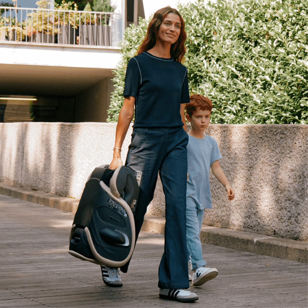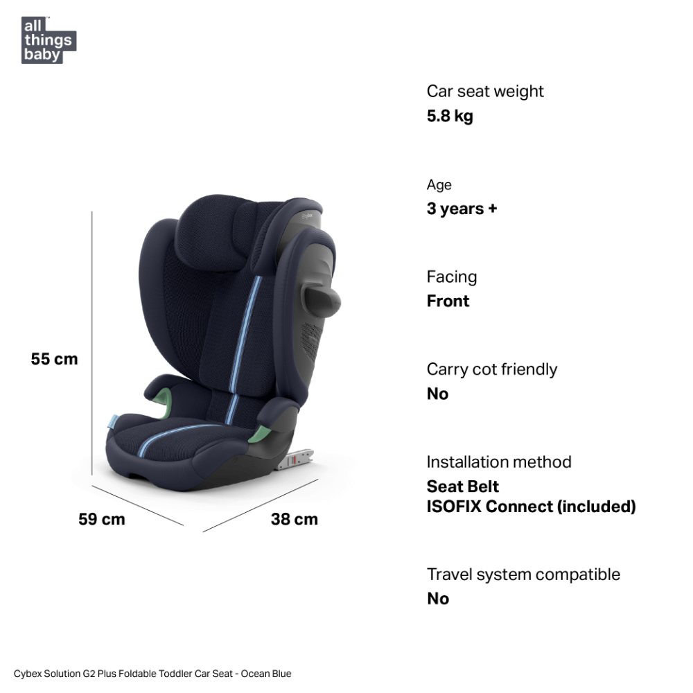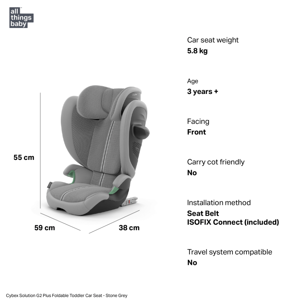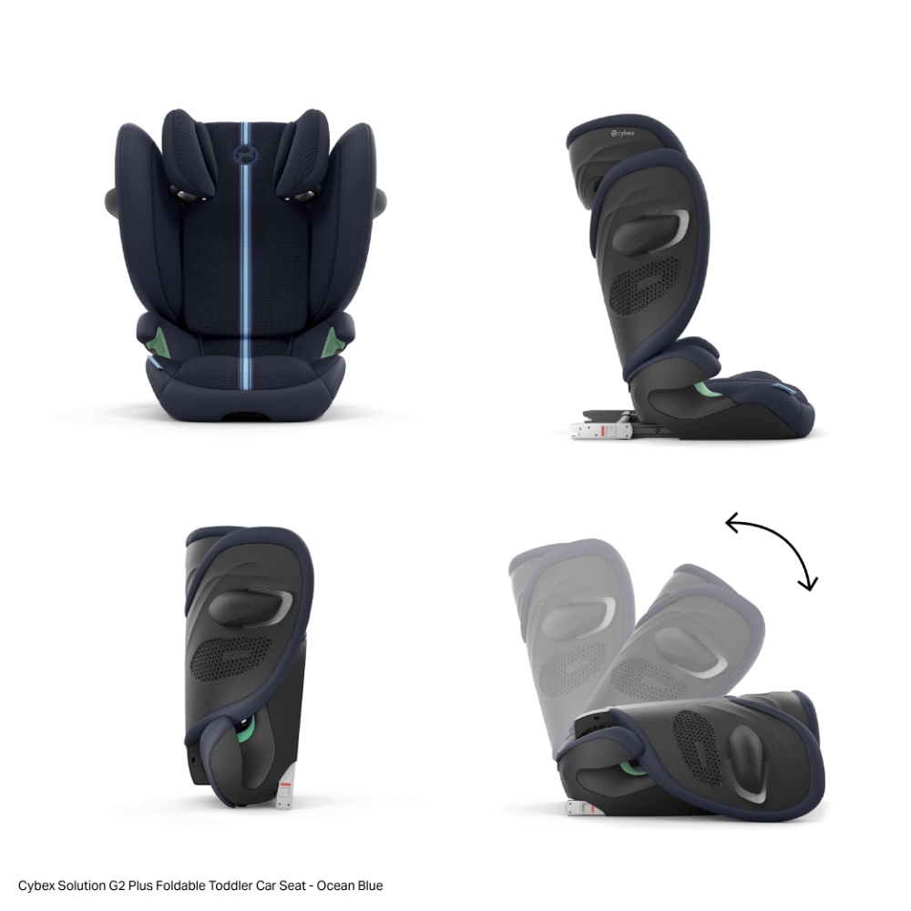 The Cybex Solution G2 Plus is foldable high-back booster car seat that grows with your child. Lightweight and compact design that folds within seconds with a helpful carry handle. It is an excellent fit between safety and ease of use with a side impact protection and seat-belt or included ISOFIX connectors installation method. The patented adjustable headrest, reclining function, and breathable mesh fabric offers children added comfort when you are on-the-go.