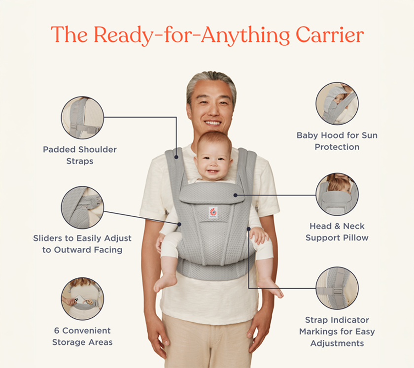 - Easy to use: One-handed sliders and strap markings allows you to easily adjust the carrier and switch between carry positions