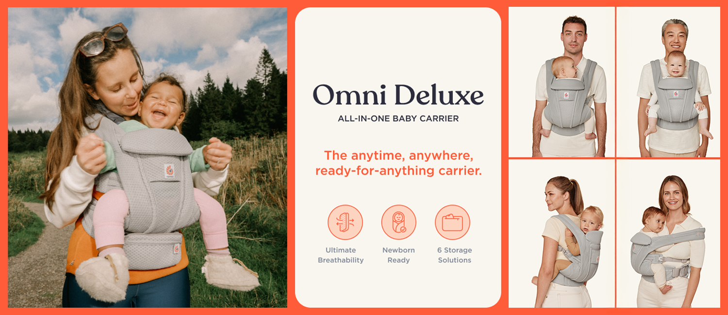 The Ergobaby Omni Deluxe carrier has incredible comfort and maximum storage to keep you supported and your baby cozy anytime, anywhere with it's breathable mesh fabric. It provides 4 carrying positions from inward, facing out, hip, and back carry and grows with your baby from newborn to 4 years, making it the only carrier you need. Omni Deluxe includes 6 storage pockets to fit your essentials, adjustment strap indicators, lumbar support, and cushionable straps, UPF baby hood for privacy and sun protection for easy adjustments and added comfort.