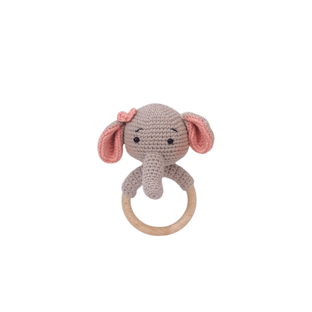 Introduce your little one to their very first cuddle companion with Dumbo - Elephant Crochet Rattle! Carefully handcrafted from soft cotton yarn, this lovable little elephant features adorable floppy ears, a dainty bow, and a smooth wooden ring — just the right size for tiny fingers to grip and shake. Designed to stimulate your baby’s senses and encourage motor skill development, this lightweight rattle makes a soft, soothing sound that’s as comforting as a hug.