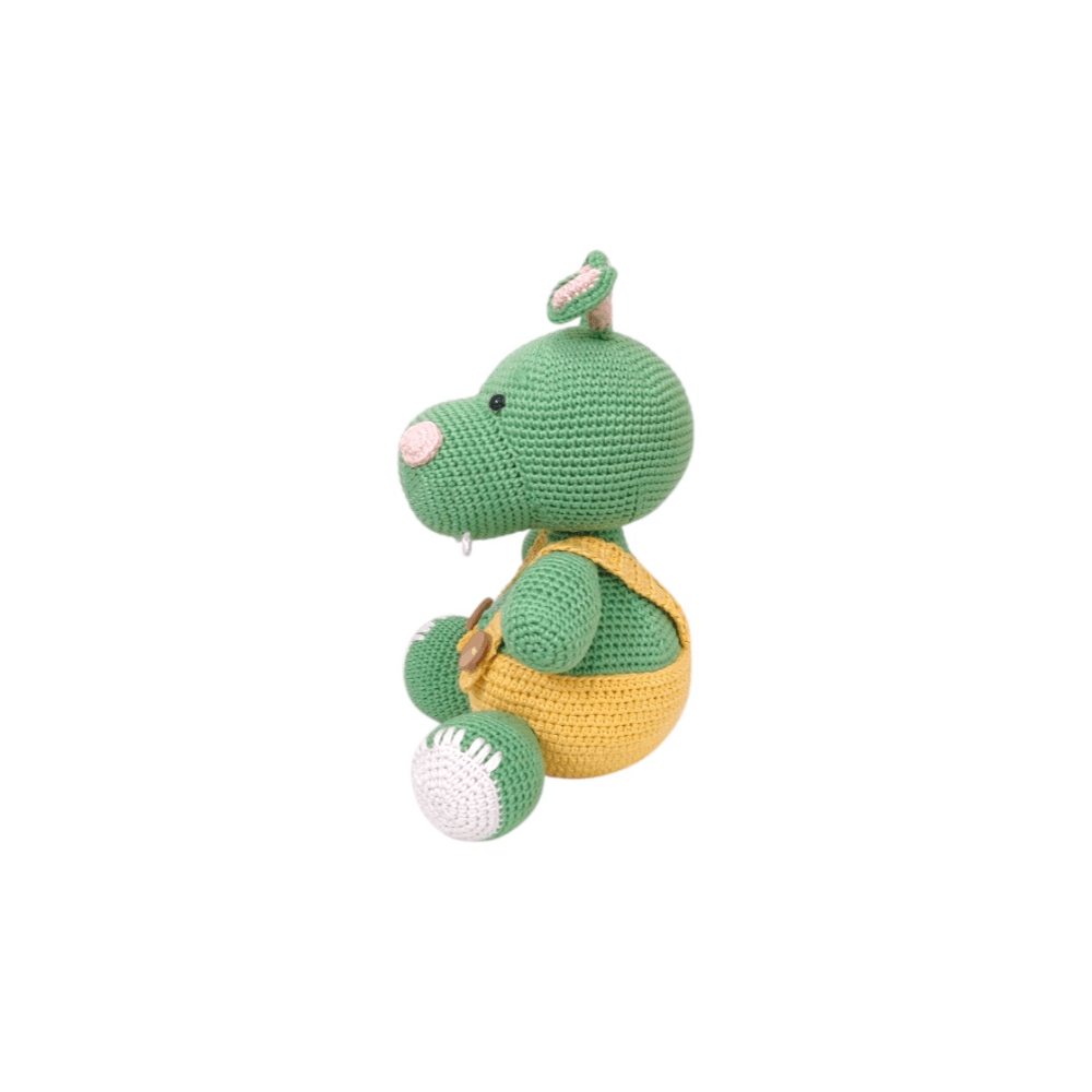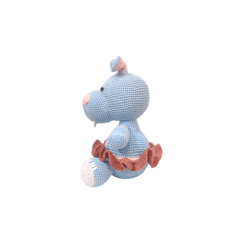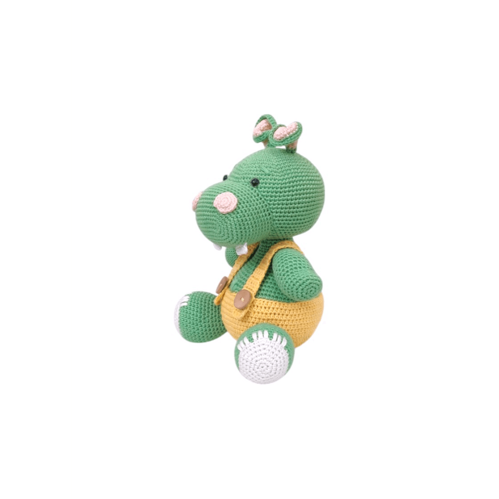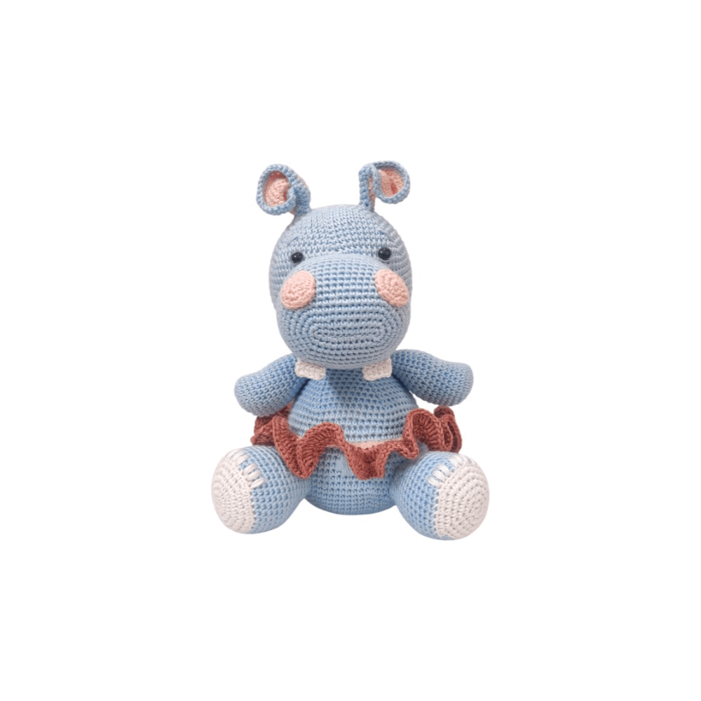 These delightful tootsie siblings bring great charm and fun with their adorable outfits and friendly faces. Whether it's playtime, Storytime, or cuddle time, this lovable duo is ready to tag along. Hector is dapper in his sunny yellow overalls with buttoned suspenders, while Holly twirls in a sweet frilly skirt that’s perfect for tiny tea parties and big bear hugs. Carefully crafted from soft cotton yarn, they’re built for play and made to last. Ideal for gifts, sibling sets, or adorable nursery companions Add a splash of color and a whole lot of love and laughter to your little one’s world with these Happy Hippos!