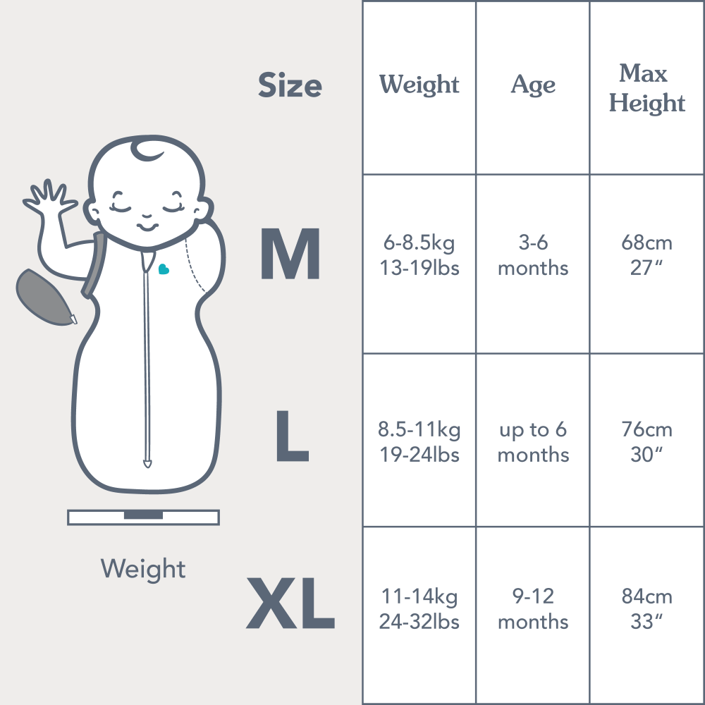 Effortlessly transition from any swaddle with the innovative Love to Dream™ transition bag, maintaining that snug, secure feeling your baby loves. The increased freedom in the transition bag allows your little one to make their first independent movements as they settle themselves. This next step of your little one’s sleep journey is made even easier for parents and babies alike with our transition baby sleeping bags. Designed to provide the snug, secure feeling of a swaddle, zip-off wings allow your baby to comfortably transition to arms-free sleep. Stage 2 is recommended for ages 3-12 months, however age is only a guidance. Product suitability will depend on a baby's physiology and development. The care-giver must determine what is suitable.