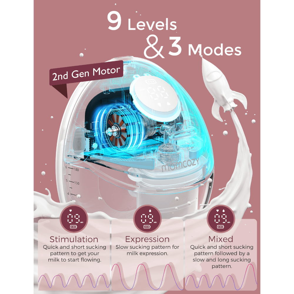 - Suction Levels & Modes: 9 adjustable suction levels with 3 modes – Stimulation, Expression and Mixed.